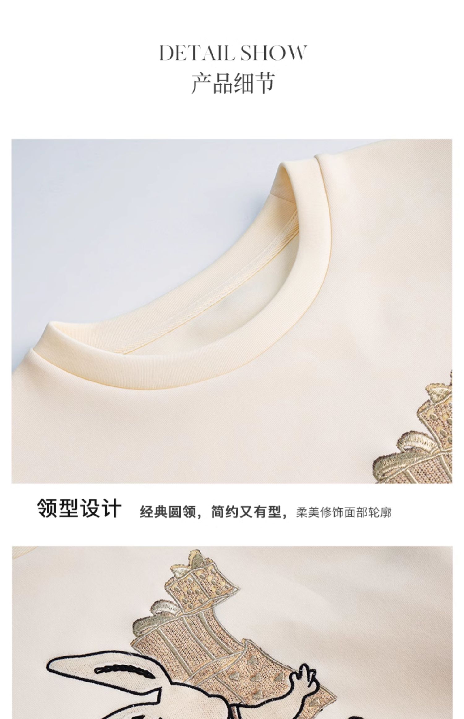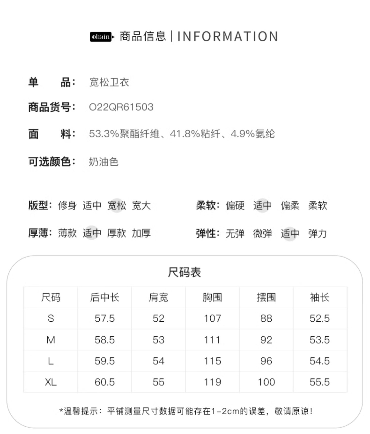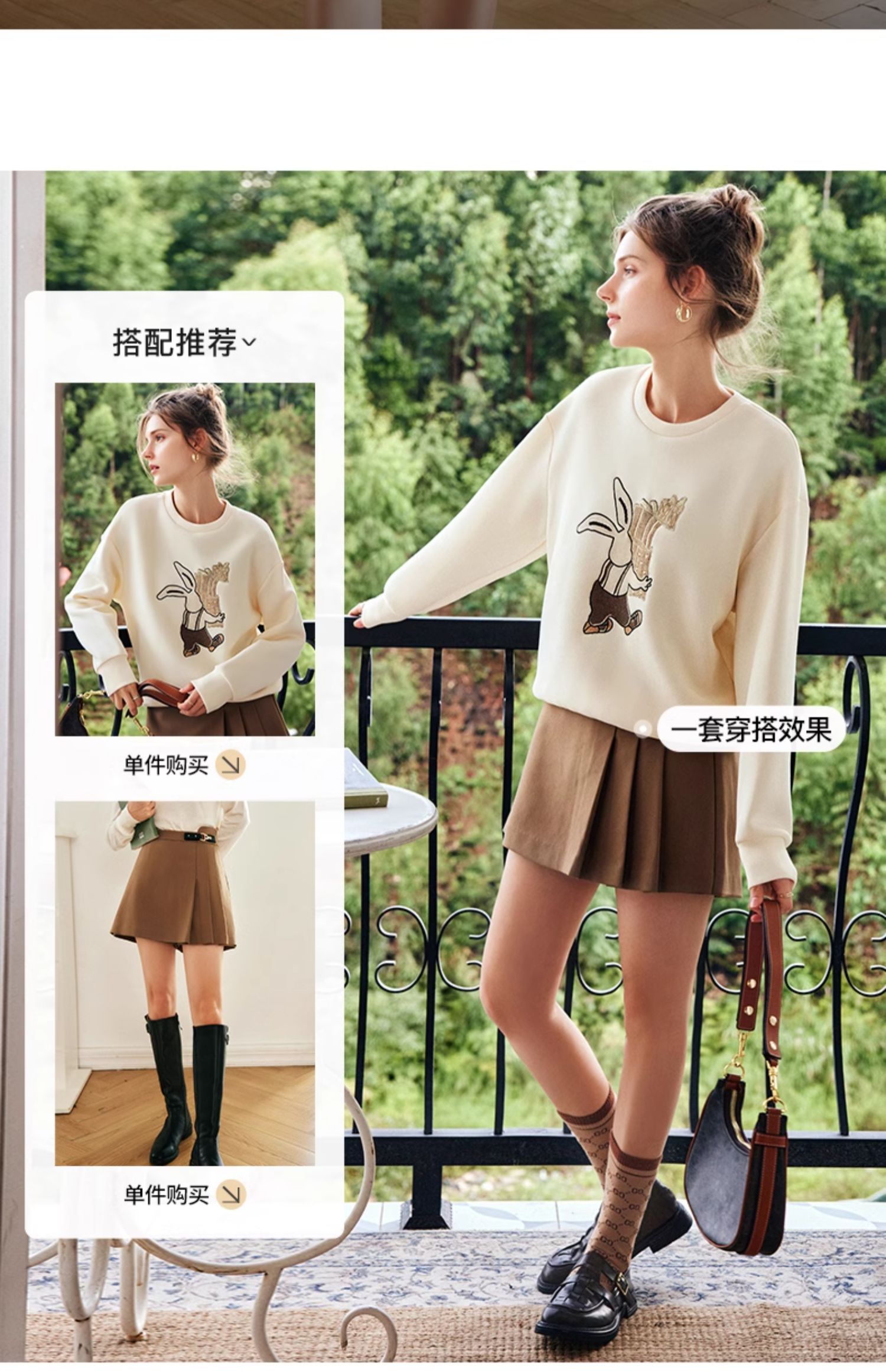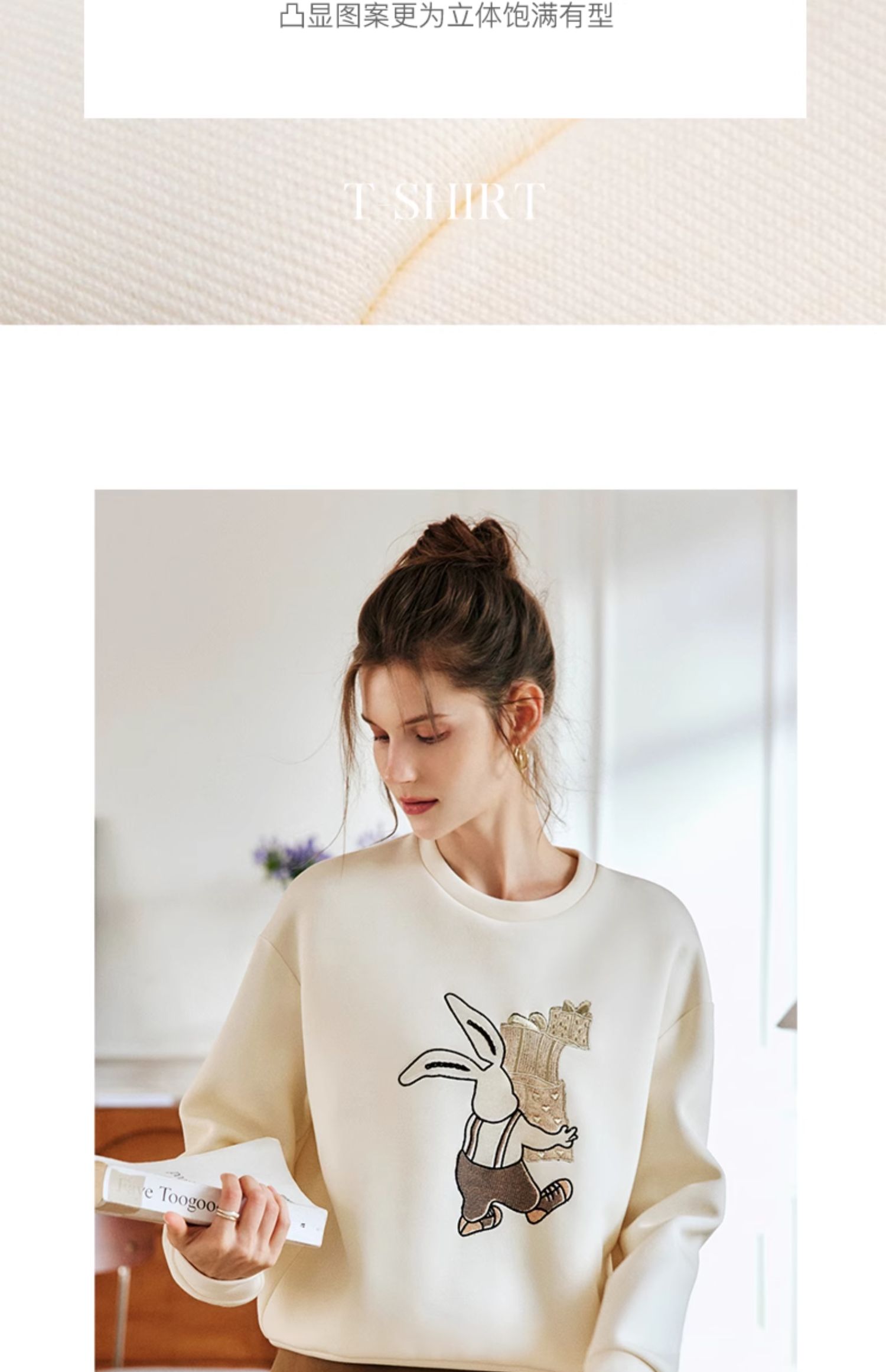 OLrain法式奶油色卫衣女早秋2024年新款宽松简约通勤刺绣套头上衣