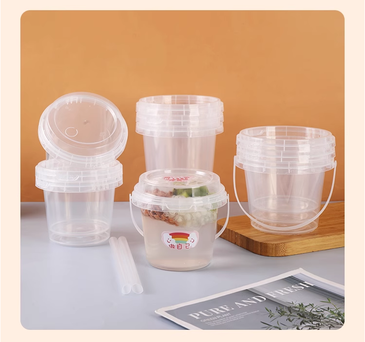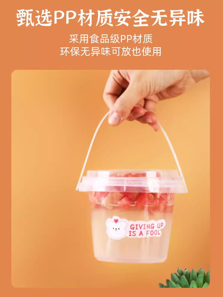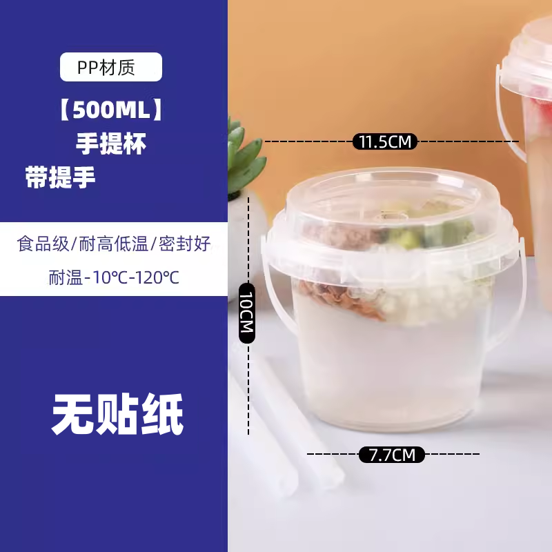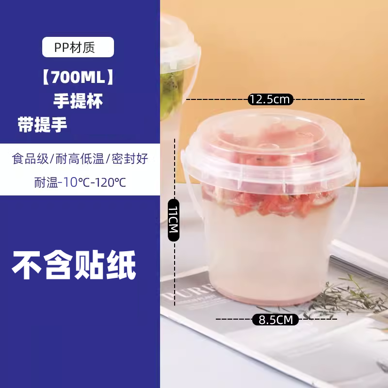 带提手水果桶 500ml/700ml 水果捞打包盒冰粉桶专用碗水果茶桶杯【不含贴纸】