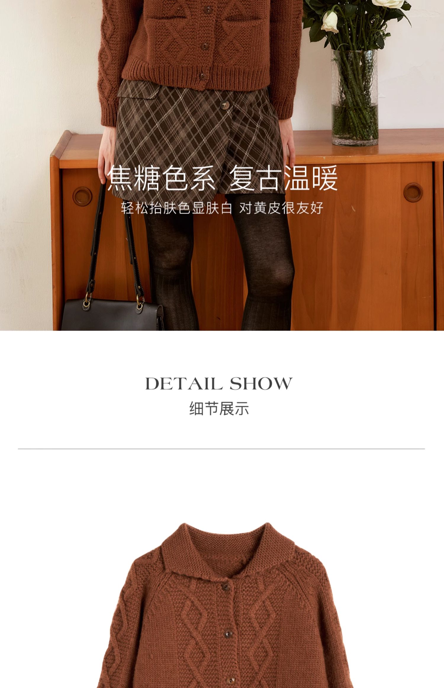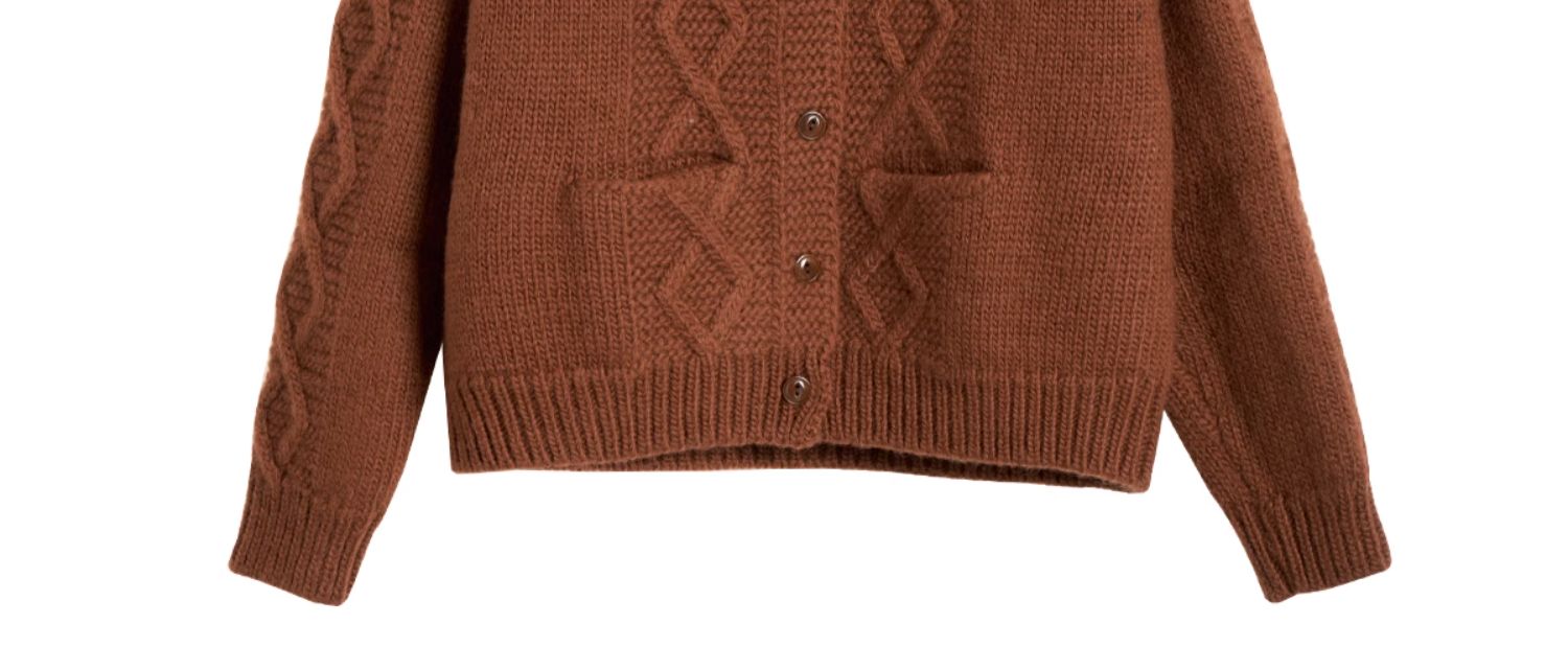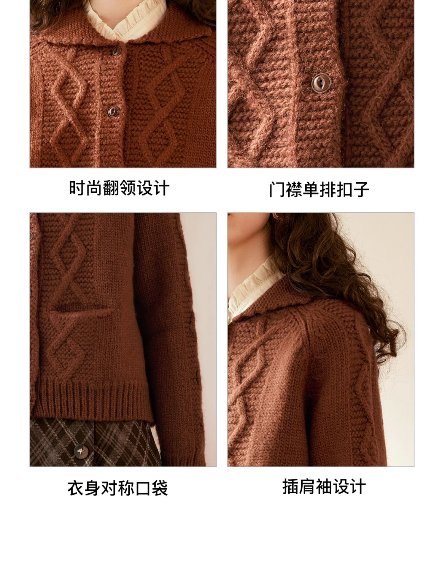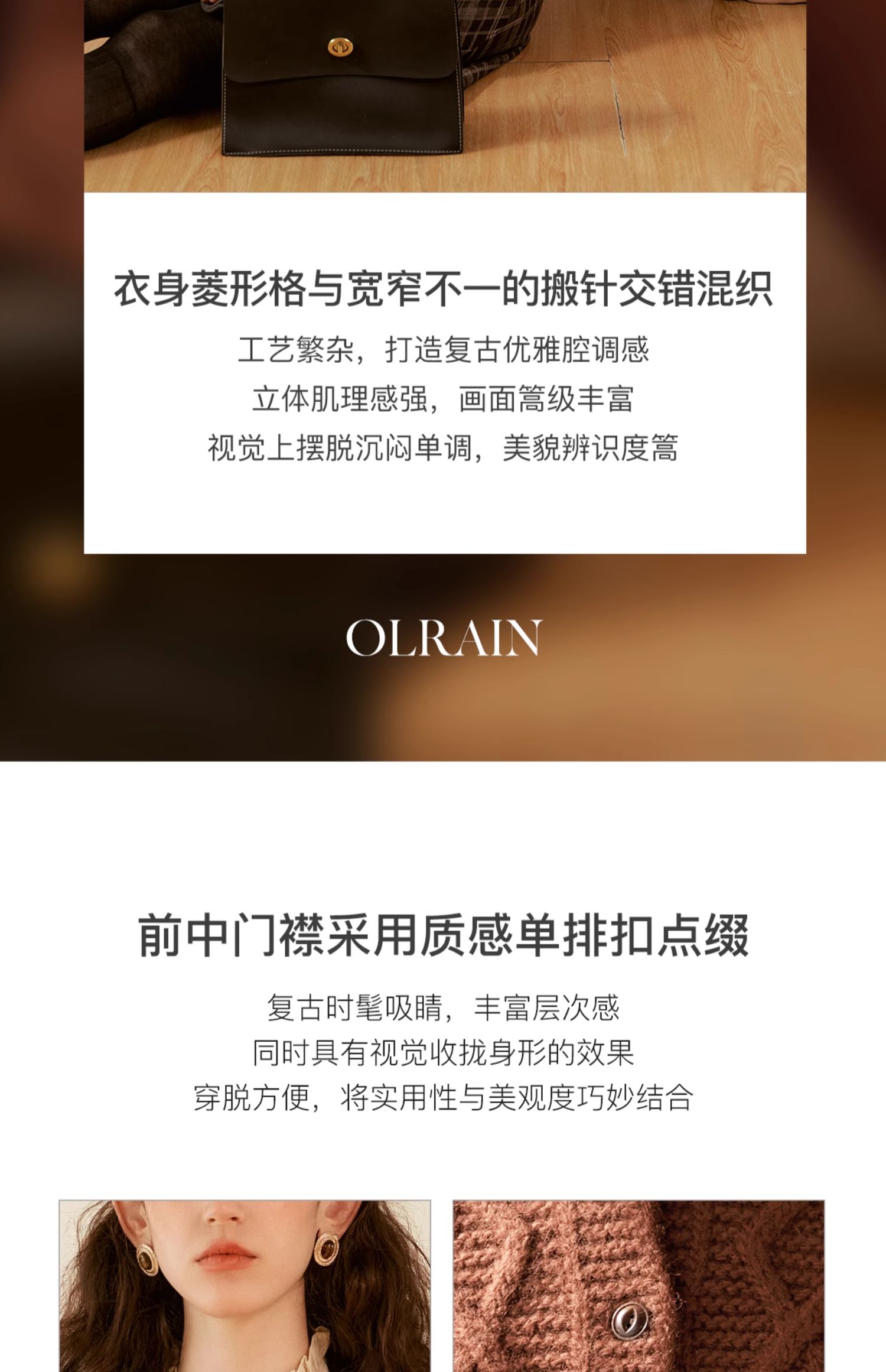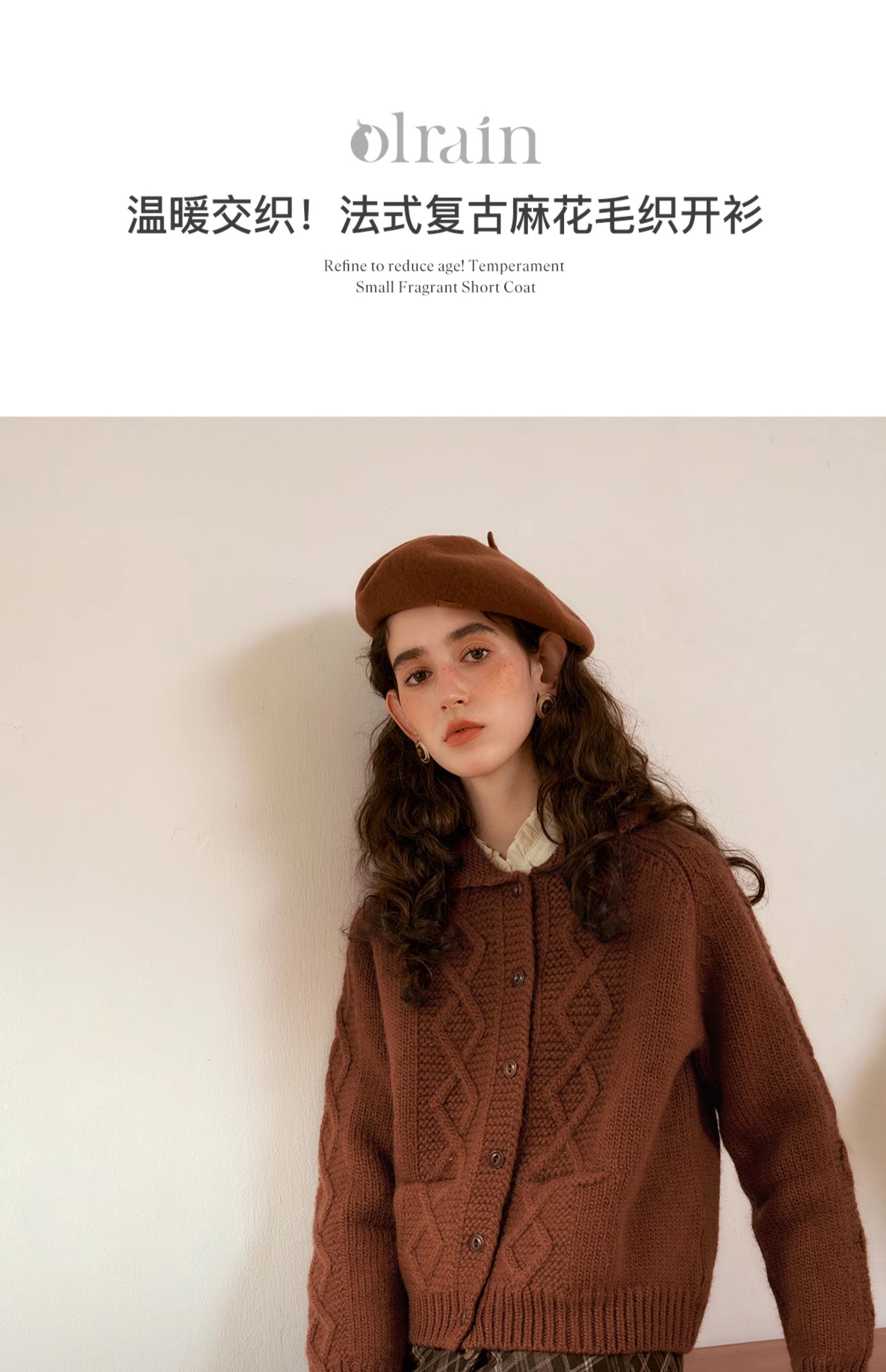OLrain欧芮儿法式焦糖色毛衣女秋季2024年新款复古麻花毛织开衫