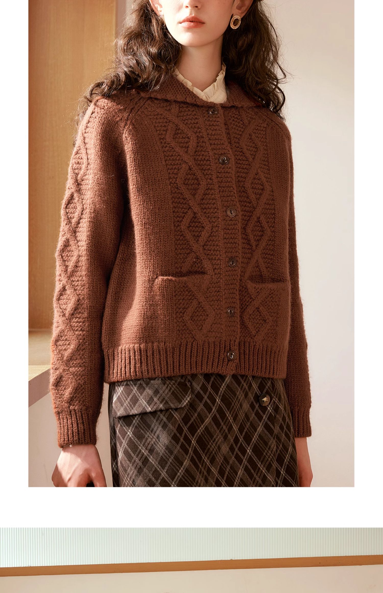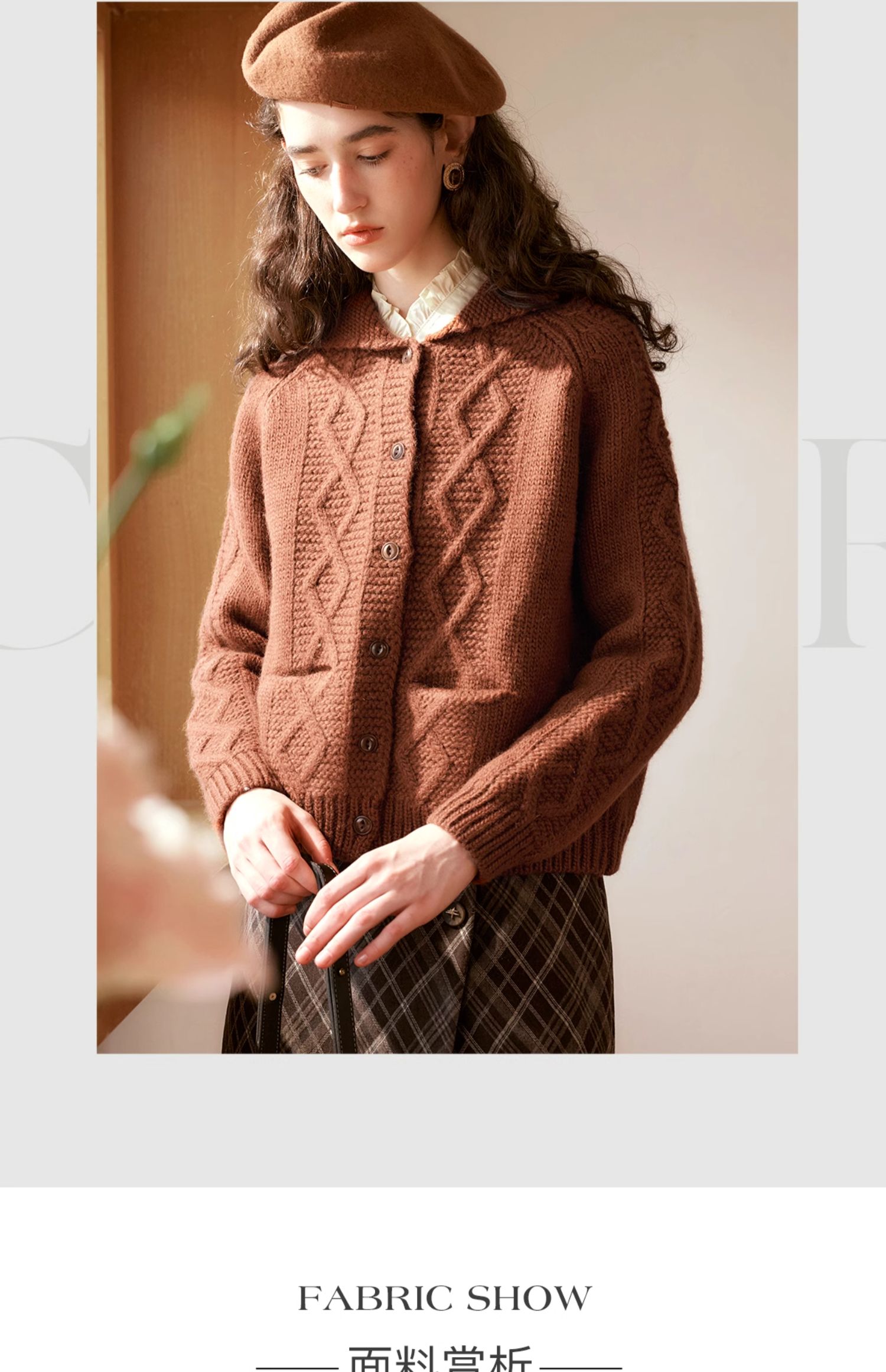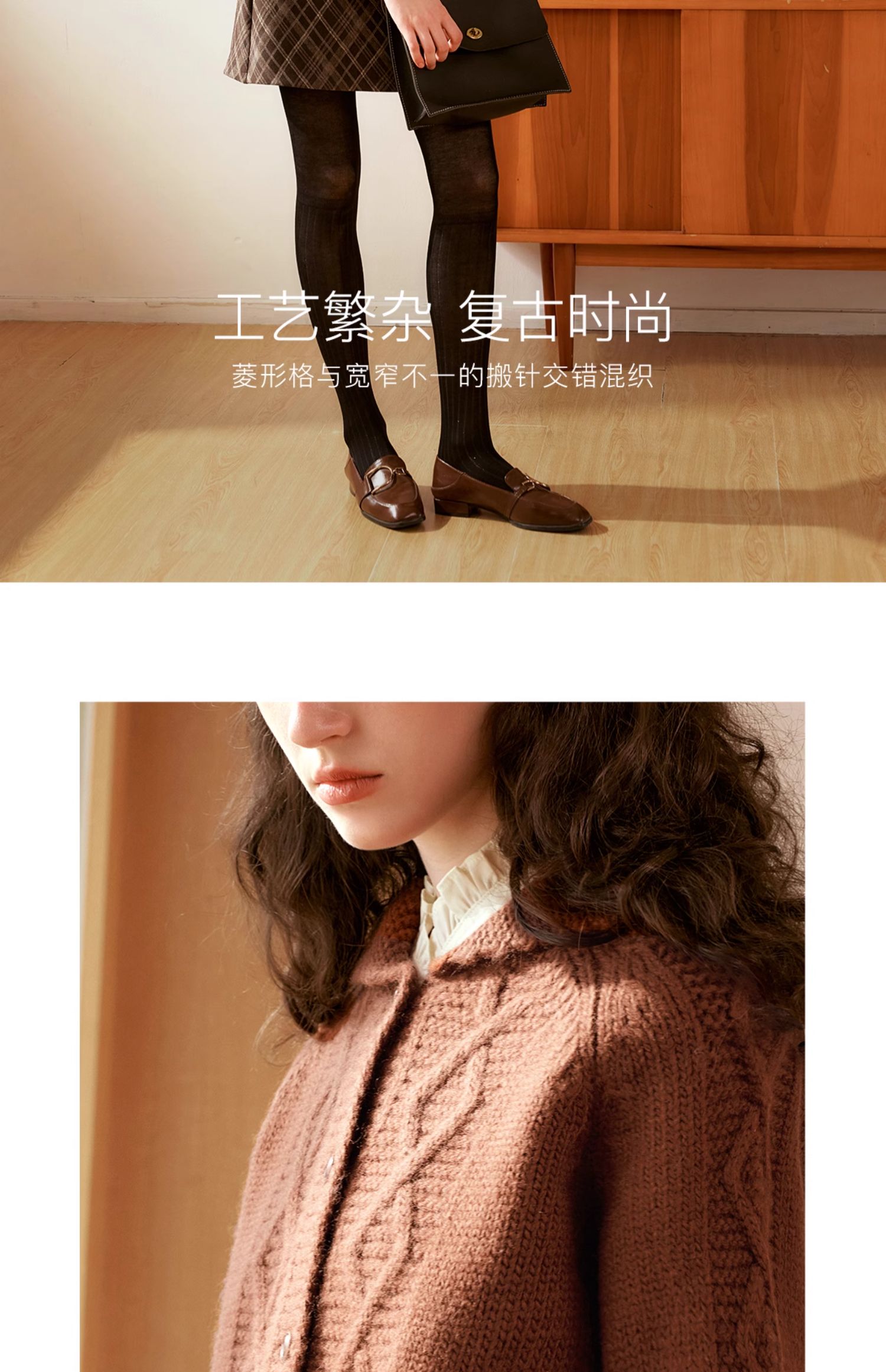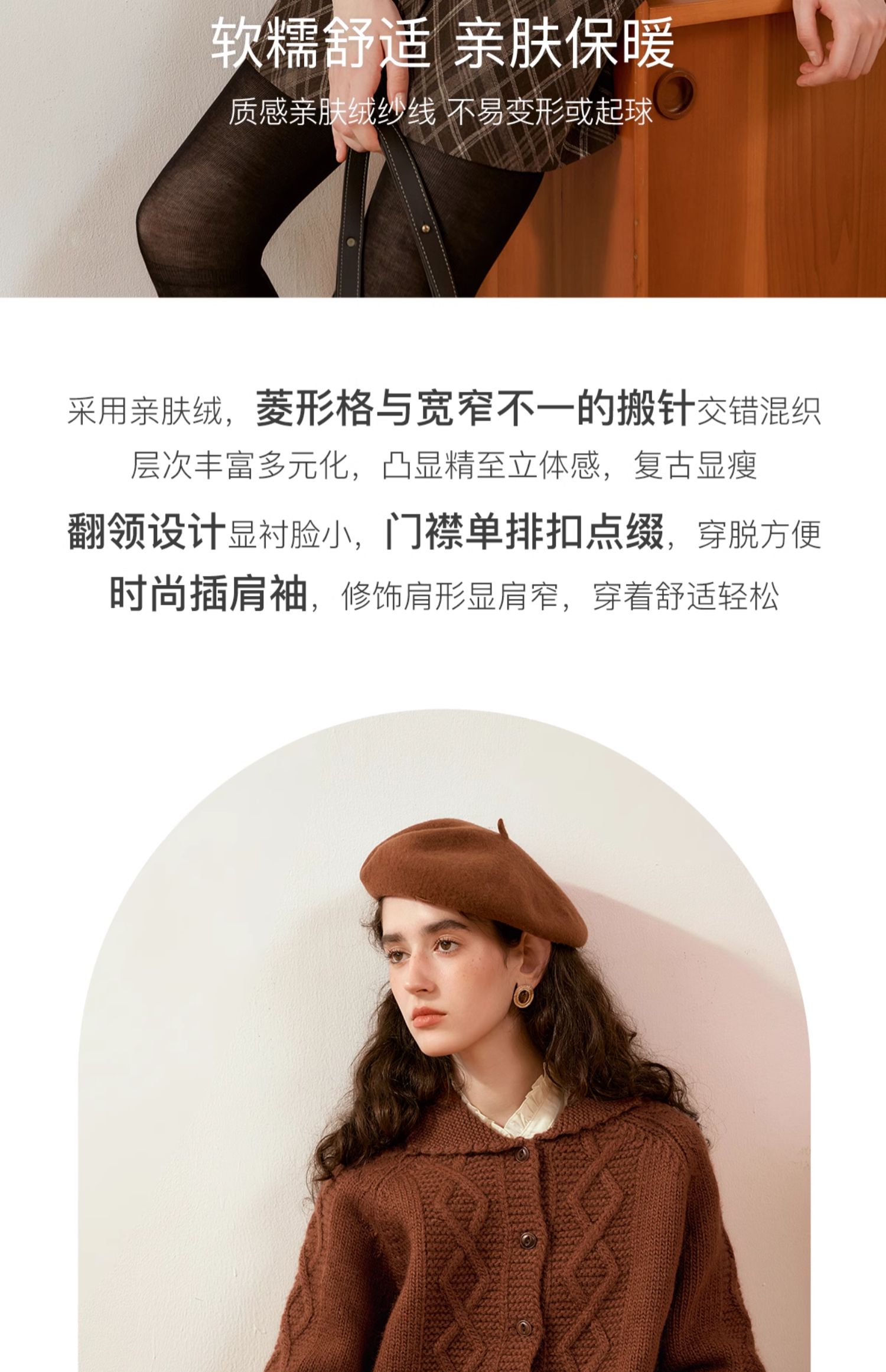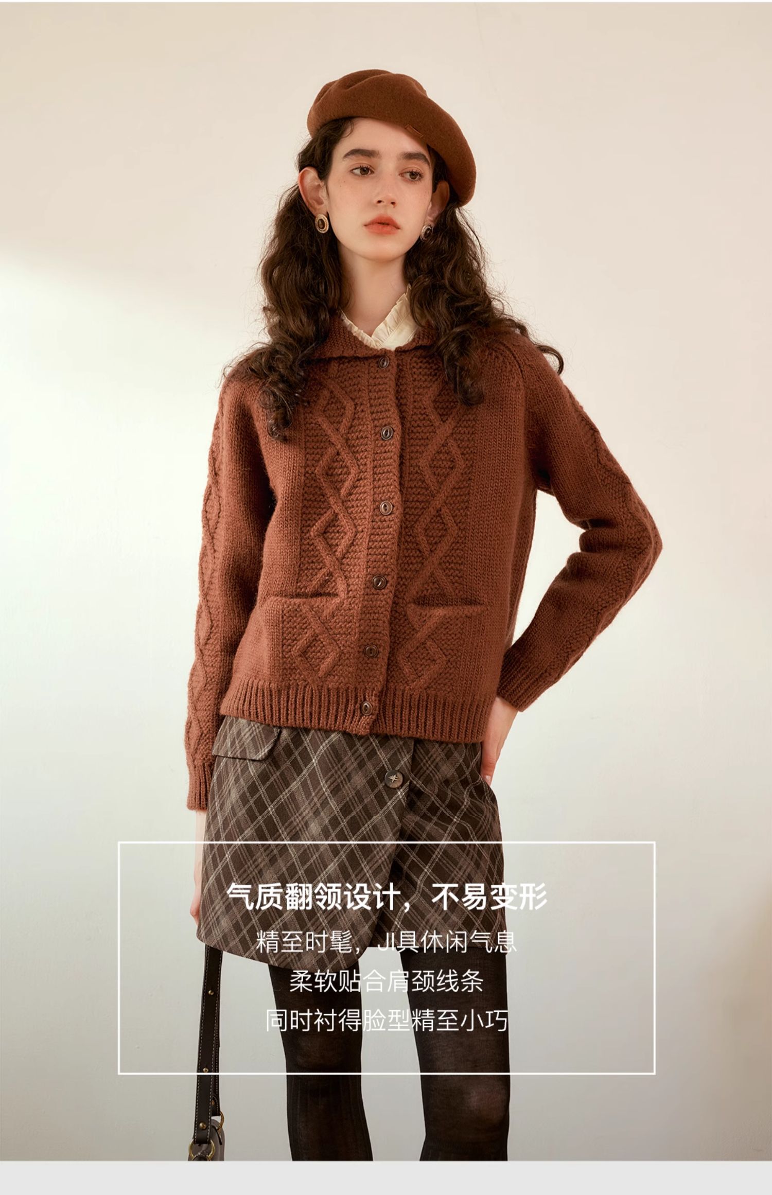 OLrain欧芮儿法式焦糖色毛衣女秋季2024年新款复古麻花毛织开衫