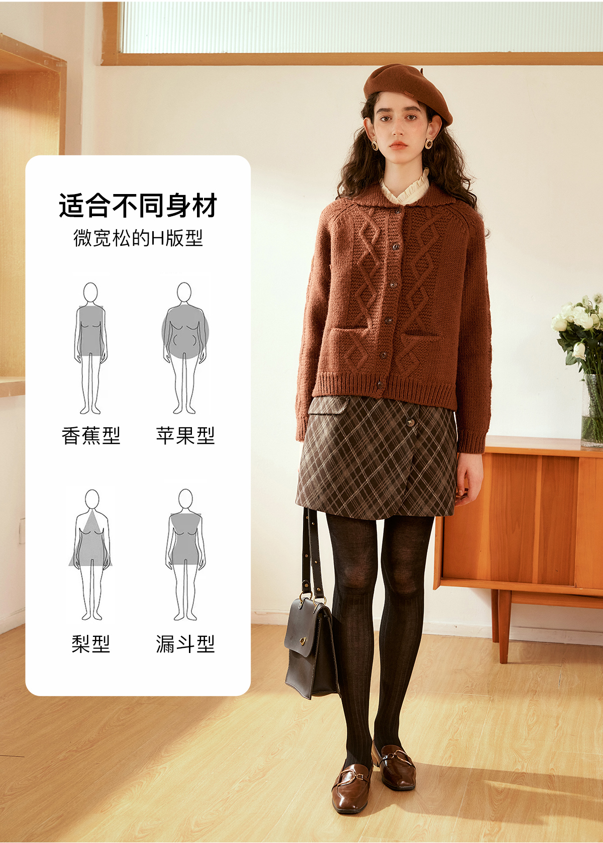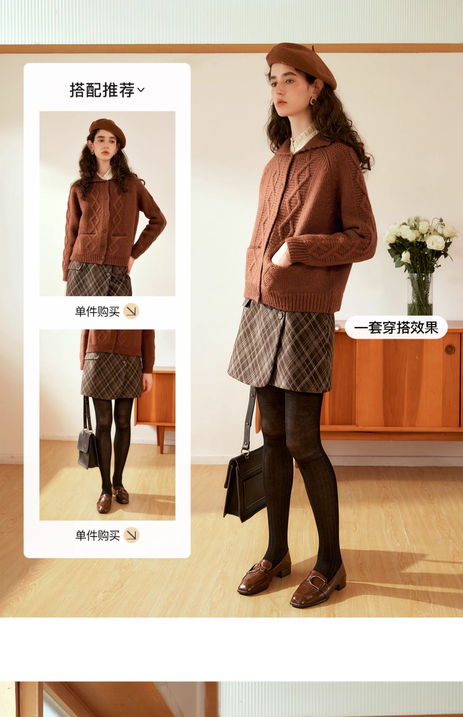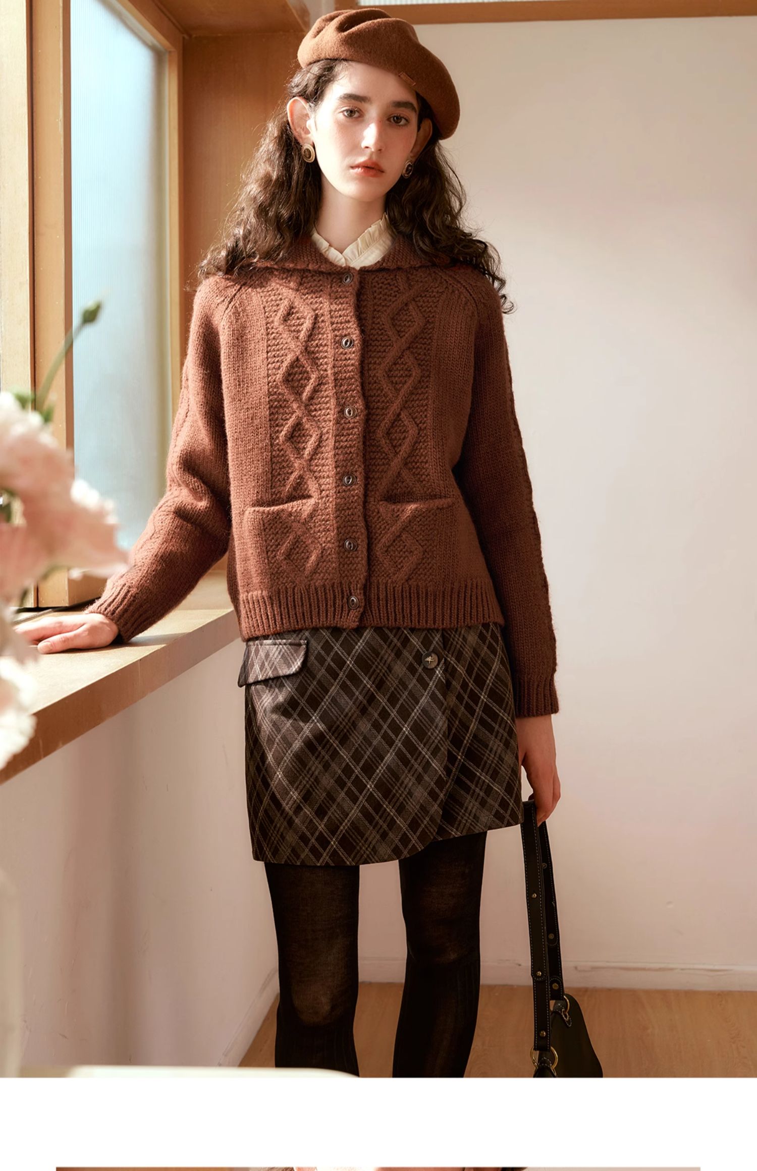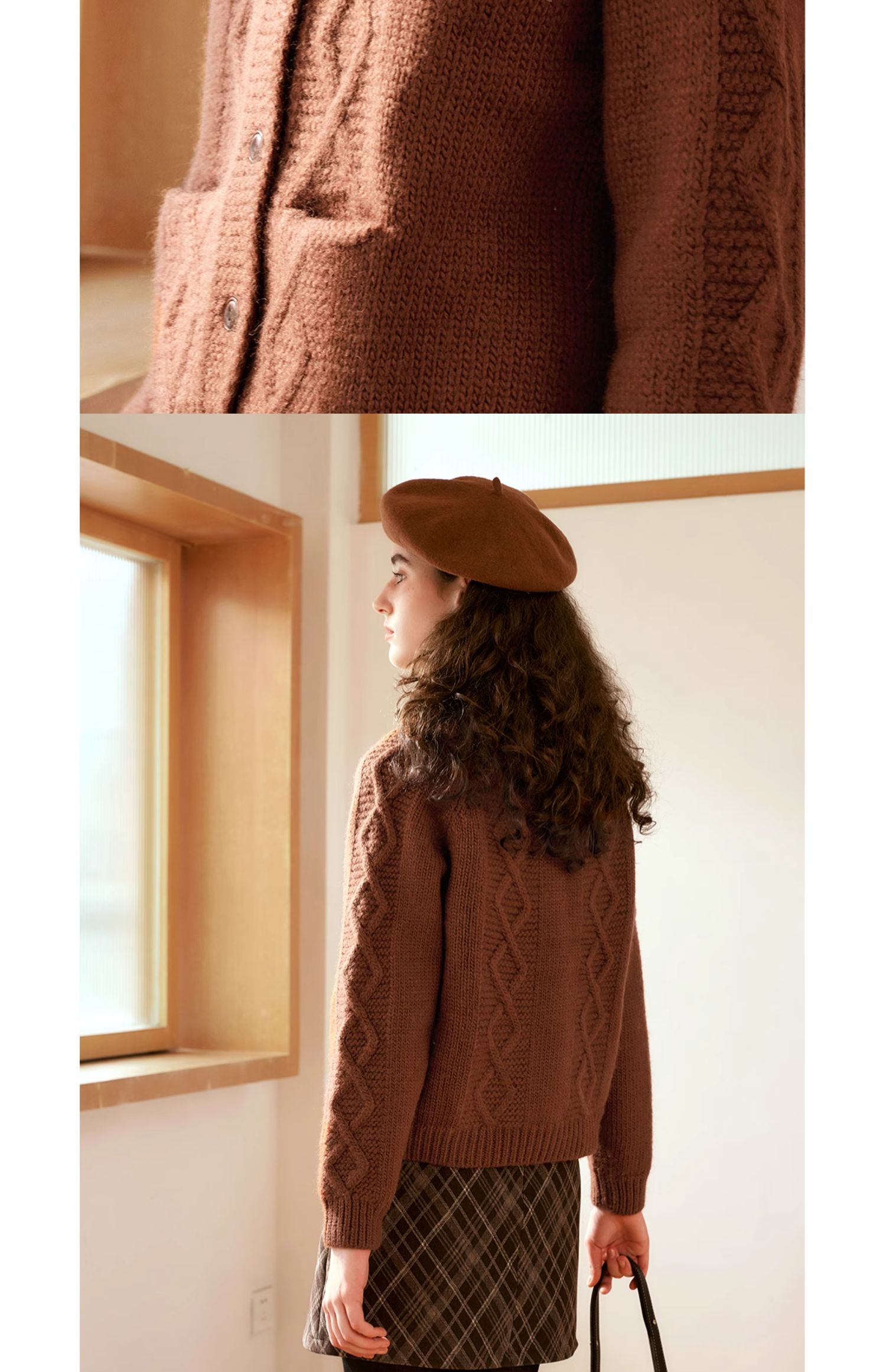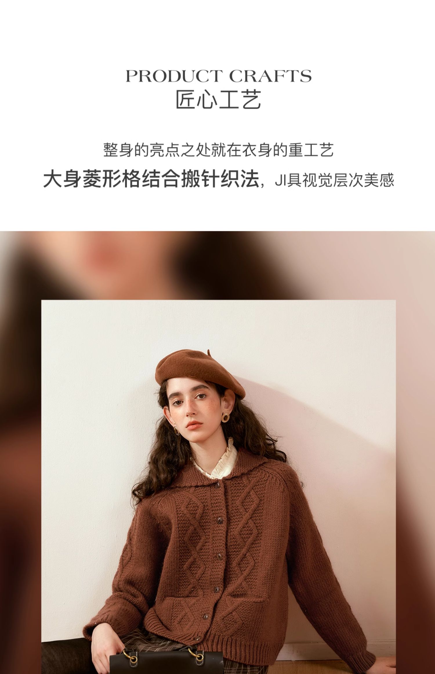OLrain欧芮儿法式焦糖色毛衣女秋季2024年新款复古麻花毛织开衫