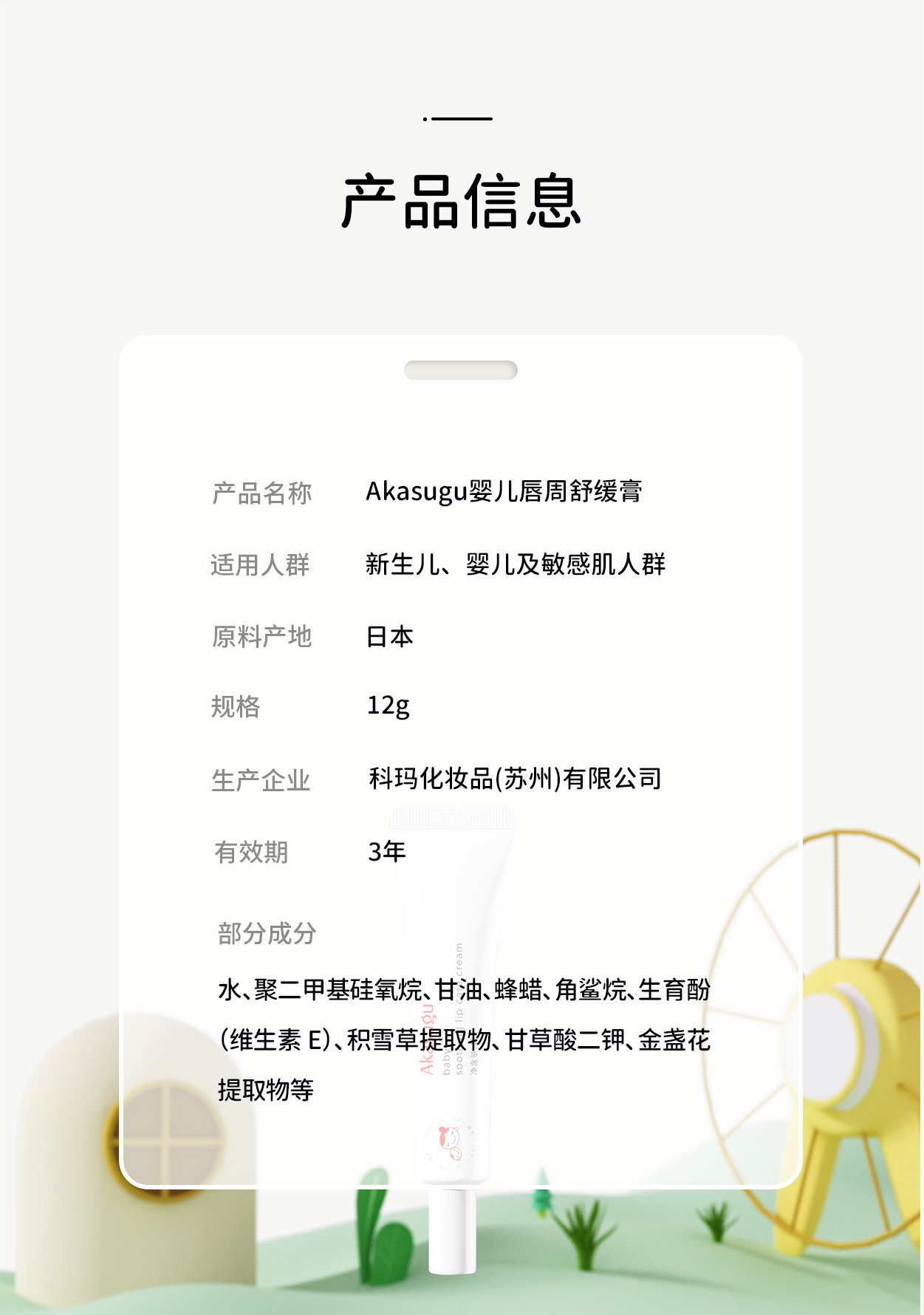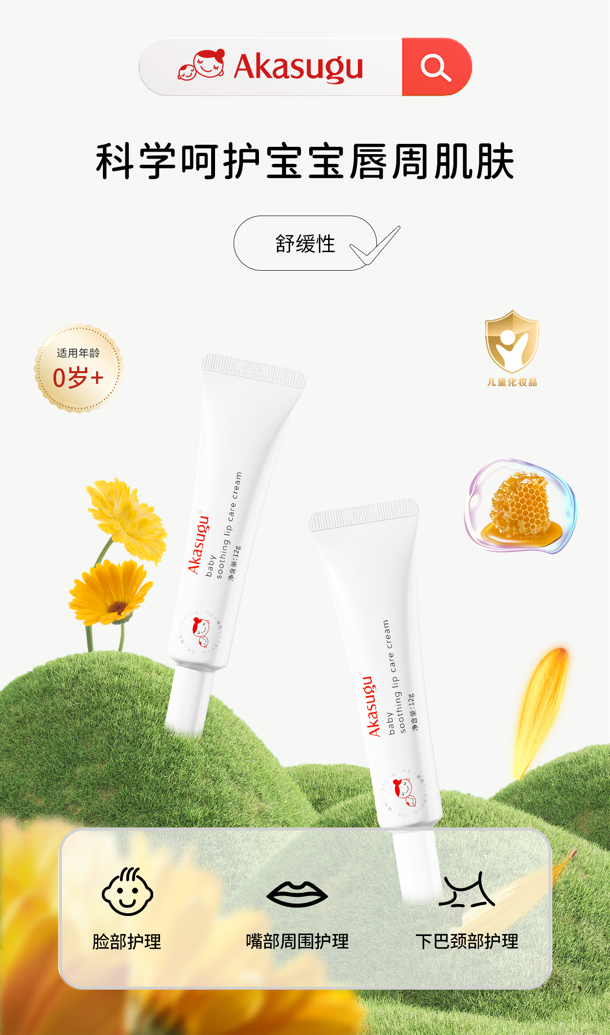 Akasugu爱舒屋婴儿专用唇周舒缓膏宝宝口水膏护肤滋润保湿面霜疹