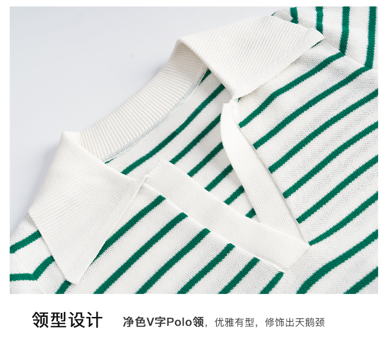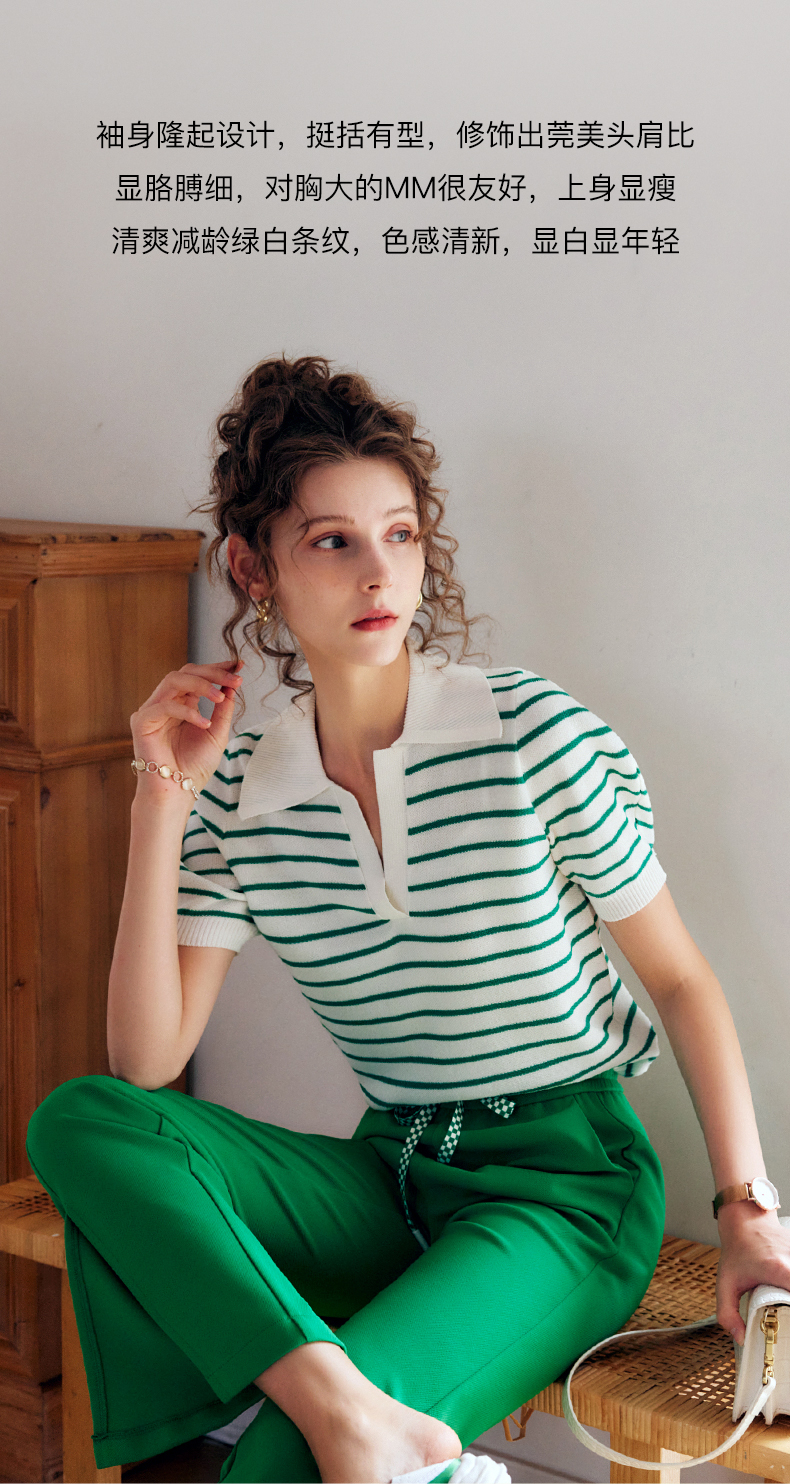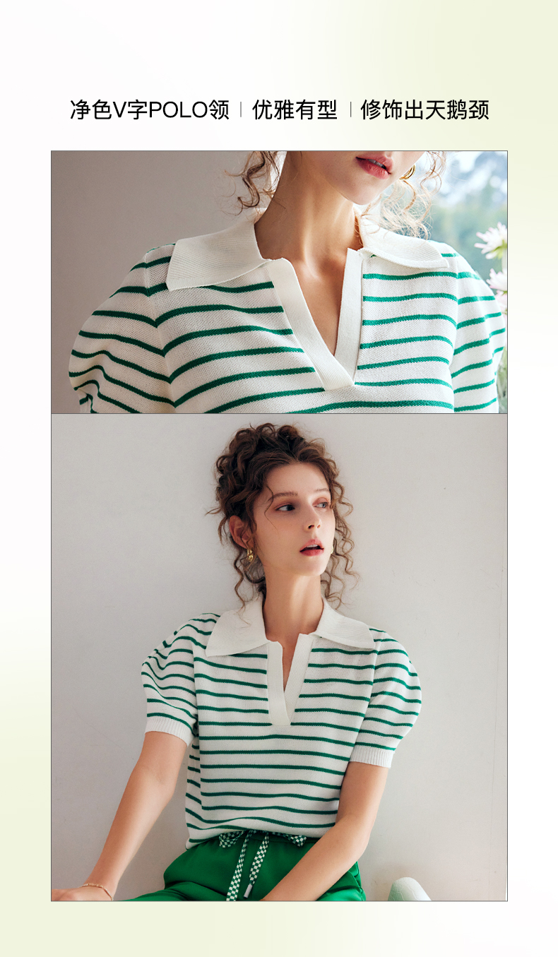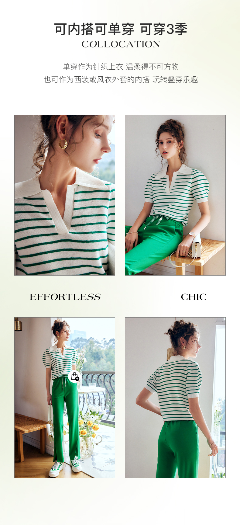 欧芮儿OLrain法式高级条纹针织衫女夏2022新款POLO领冰丝短袖上衣undefined