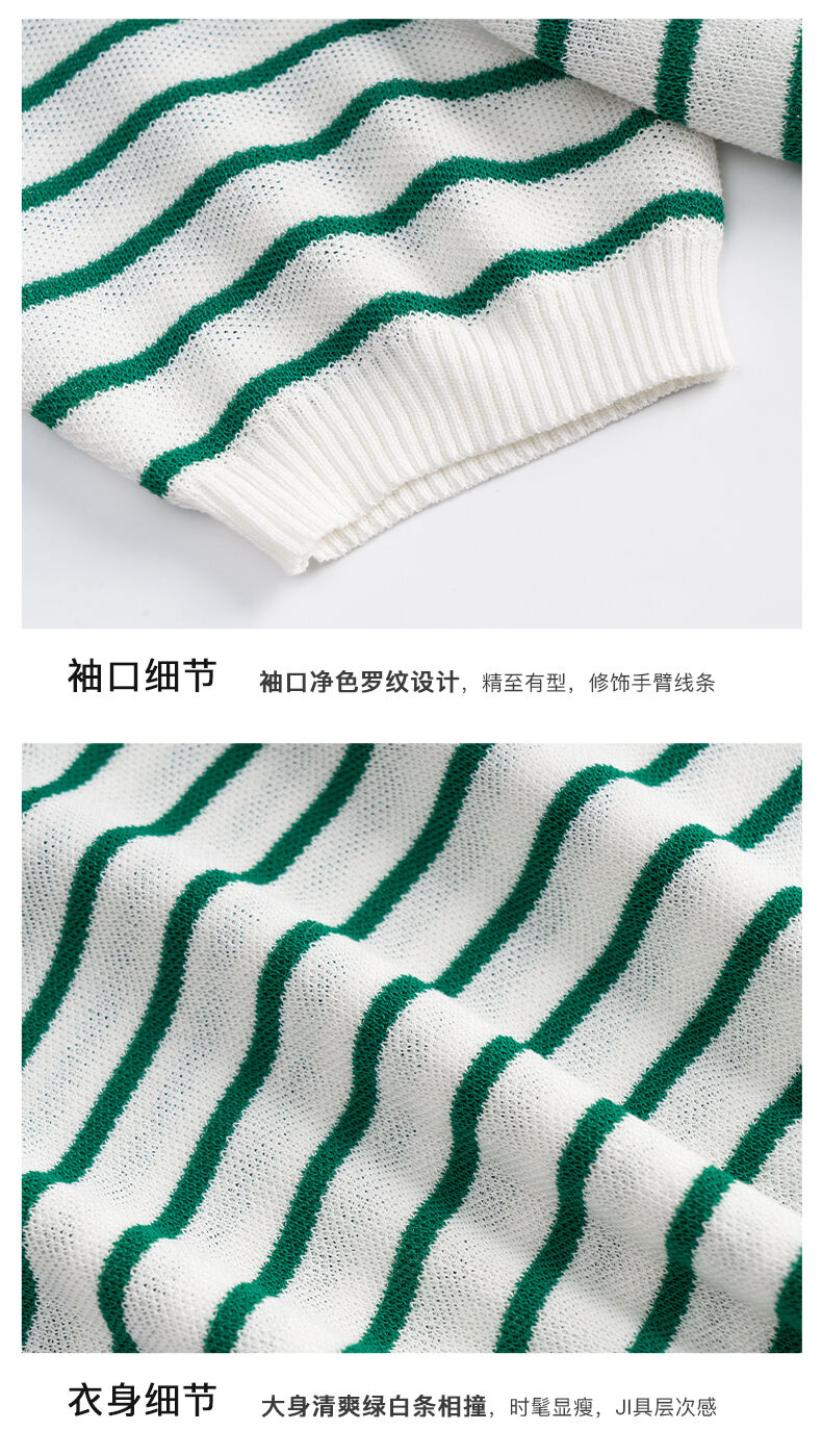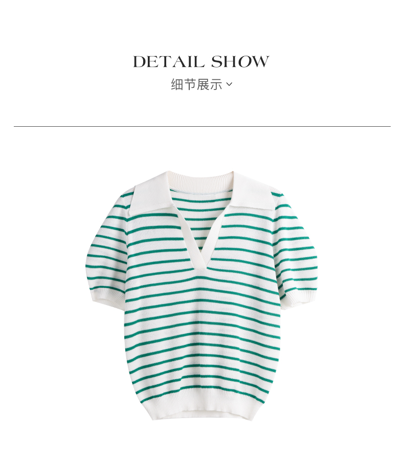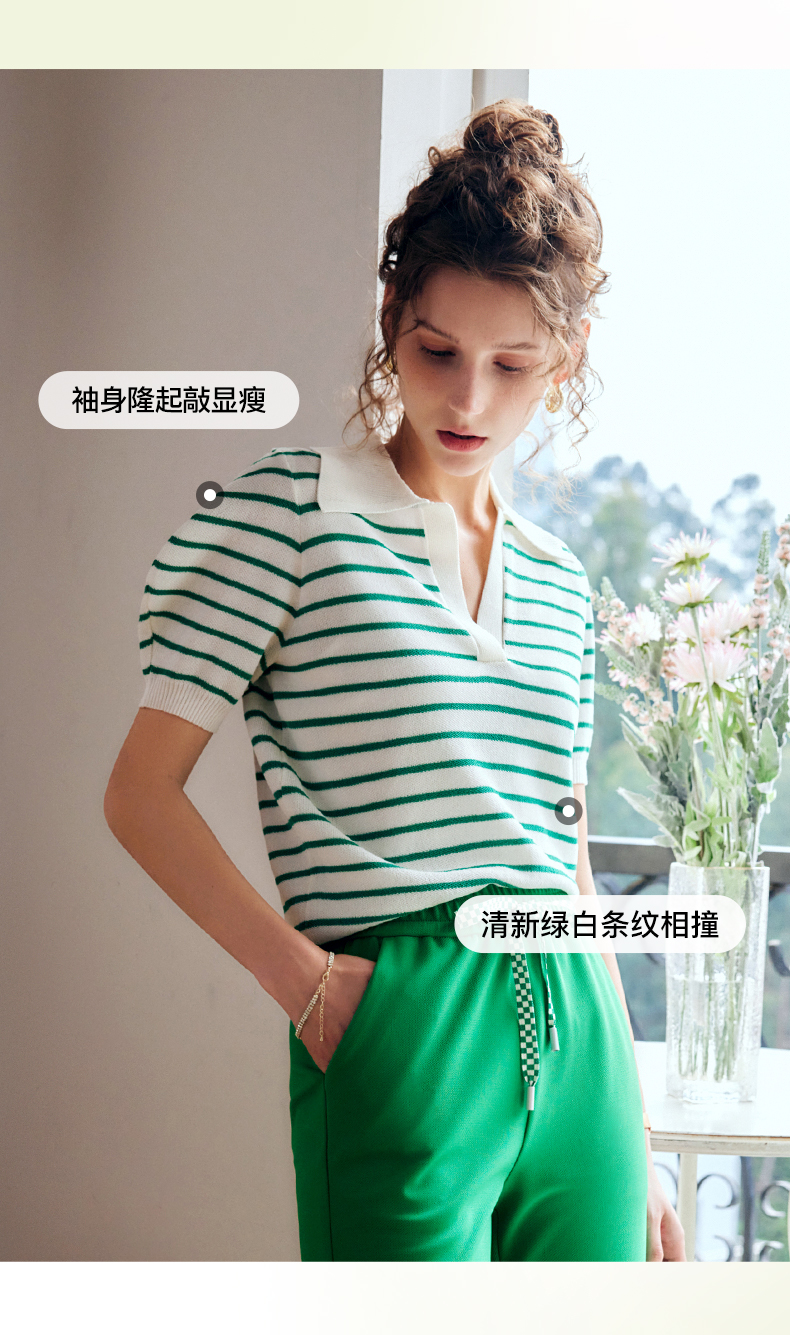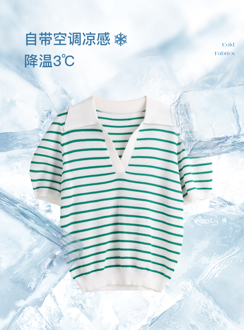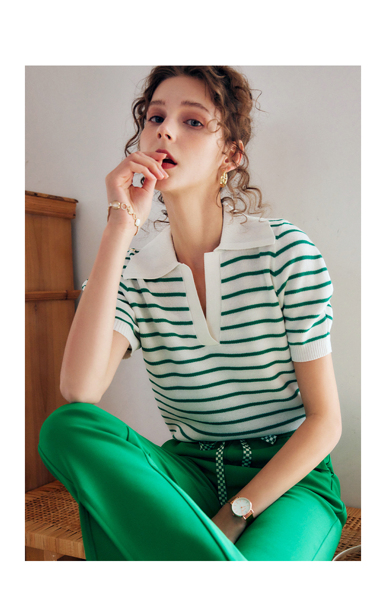 欧芮儿OLrain法式高级条纹针织衫女夏2022新款POLO领冰丝短袖上衣undefined