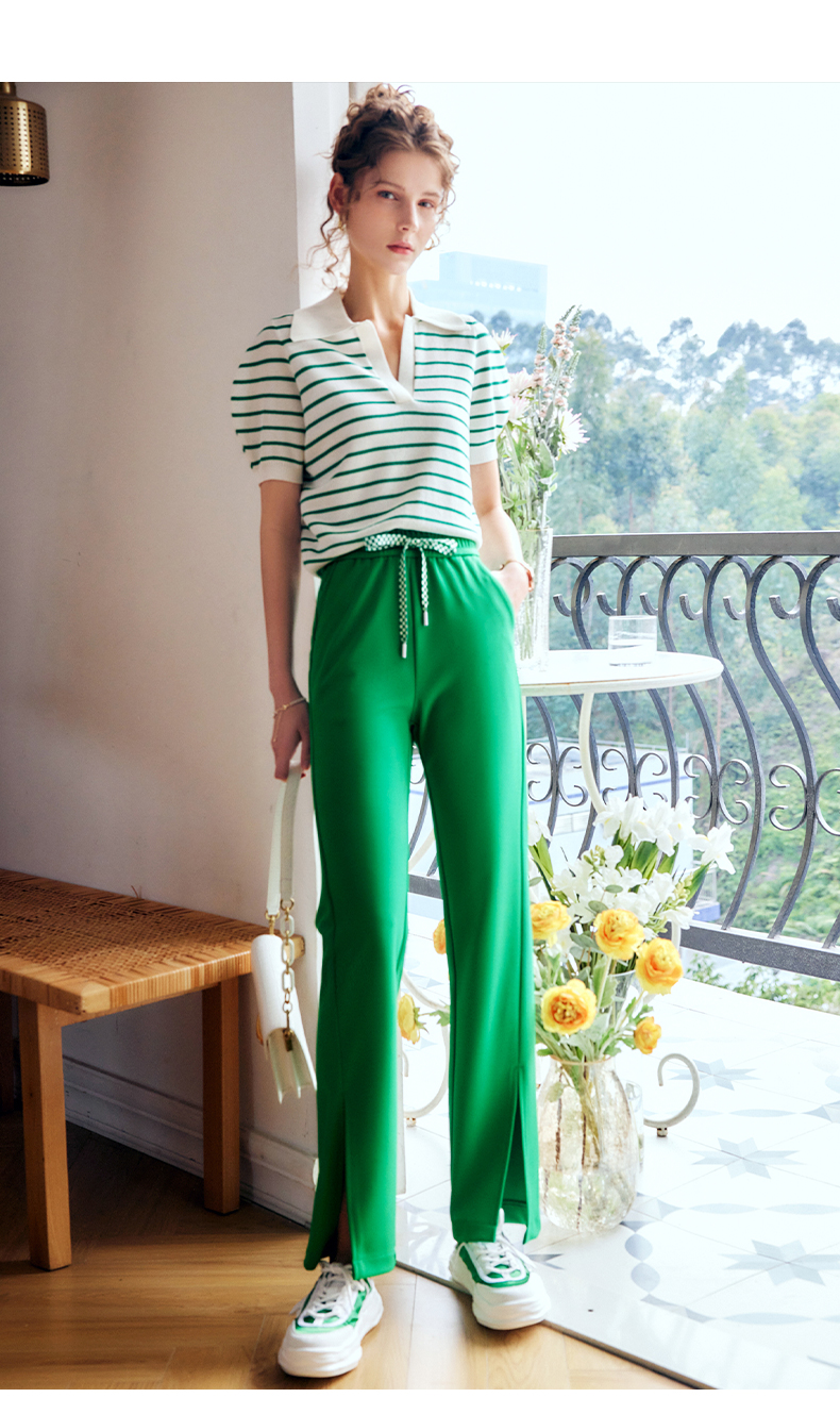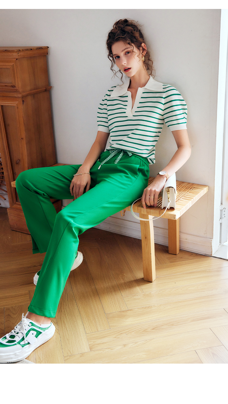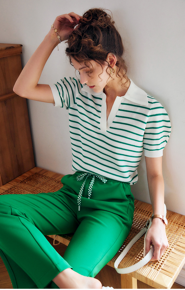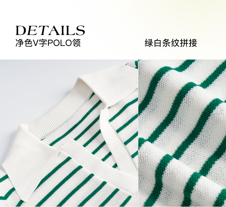 欧芮儿OLrain法式高级条纹针织衫女夏2022新款POLO领冰丝短袖上衣undefined