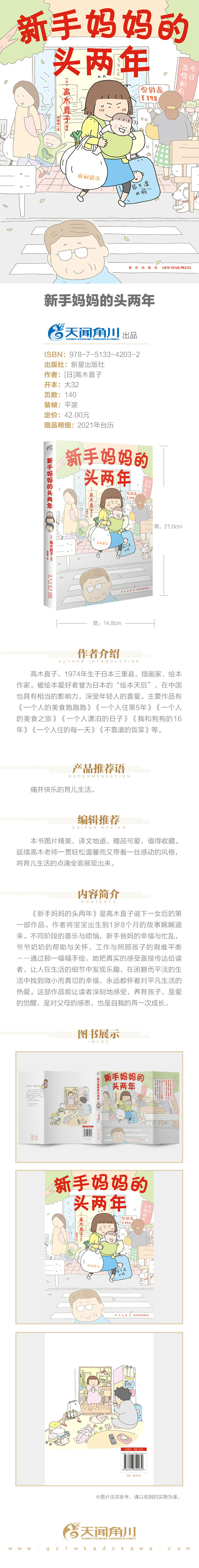 本书图片精美,译文地道,赠品可爱,值得收藏。延续高木老师一贯轻松温馨而又带着一丝感动的风格,将将育儿生活的点滴全面展现出来。