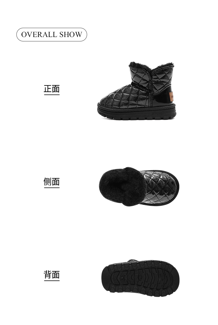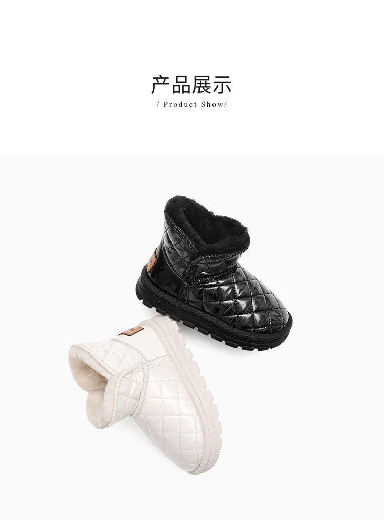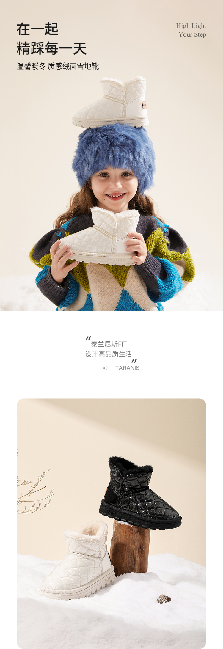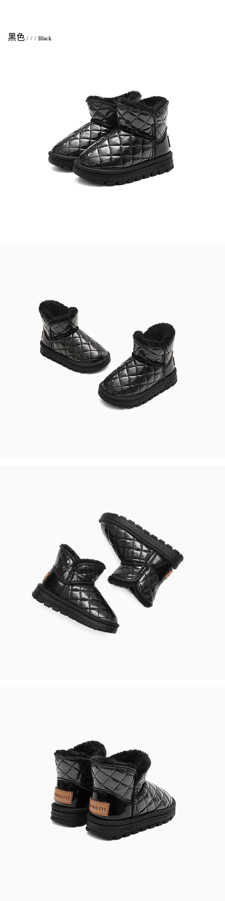 泰兰尼斯kids儿童防滑雪地靴菱形格亮面女童加绒保暖童鞋冬季新款F08X2D2813