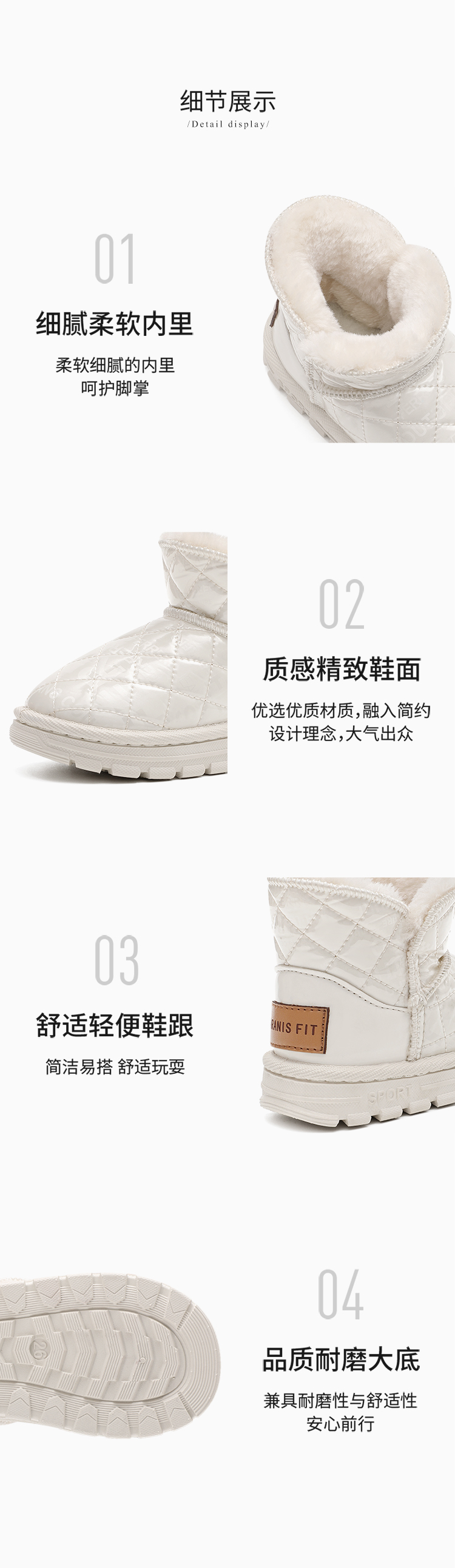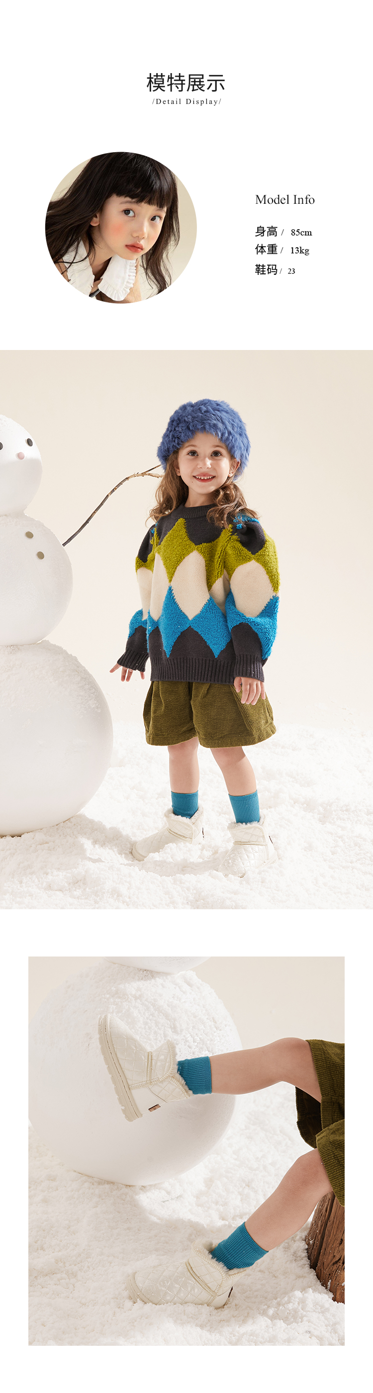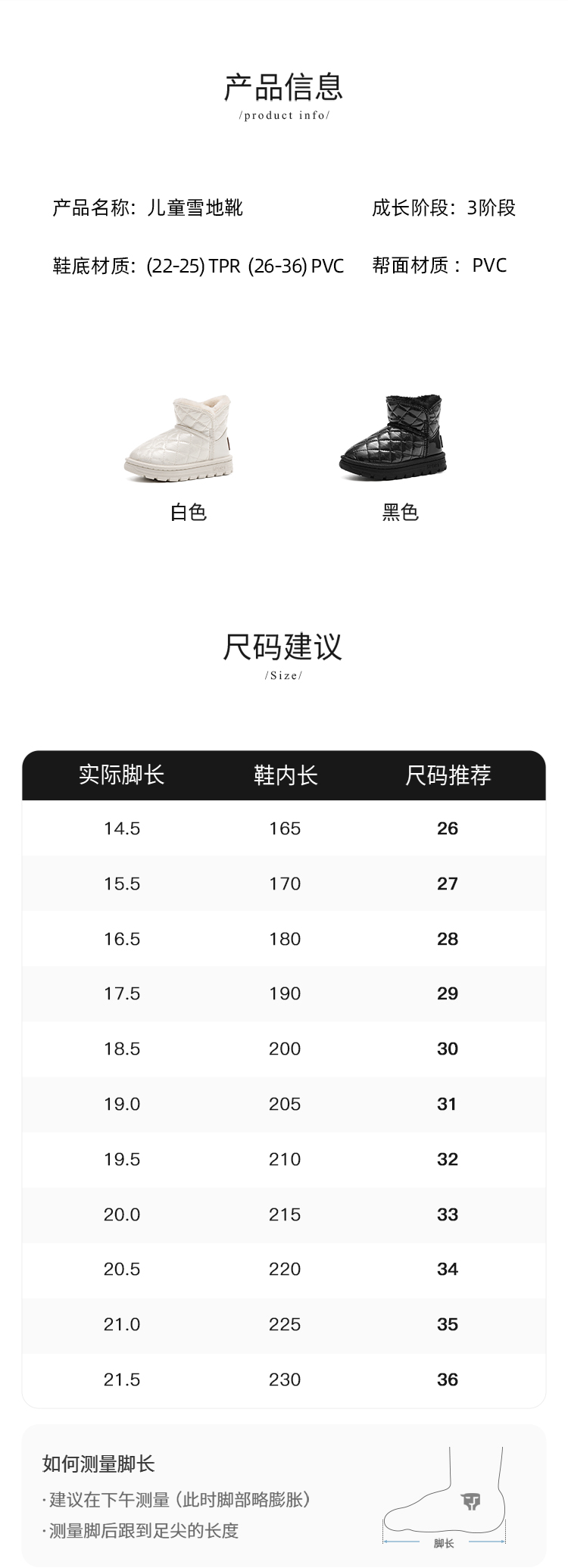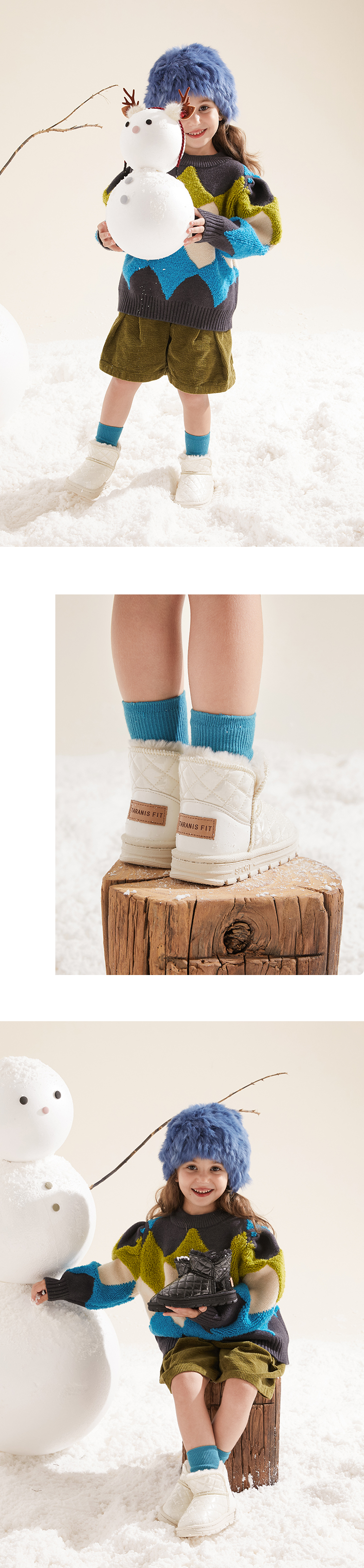 泰兰尼斯kids儿童防滑雪地靴菱形格亮面女童加绒保暖童鞋冬季新款F08X2D2813