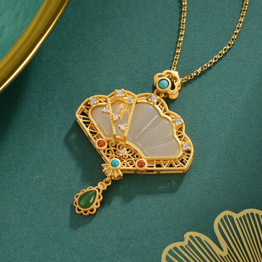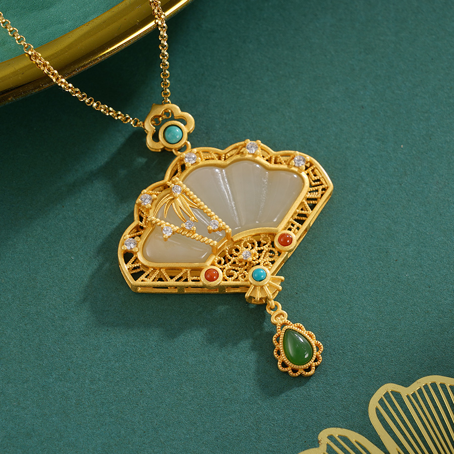 子佩集S925银【清风画扇】套链项链【DZ05476】镀金国潮2311