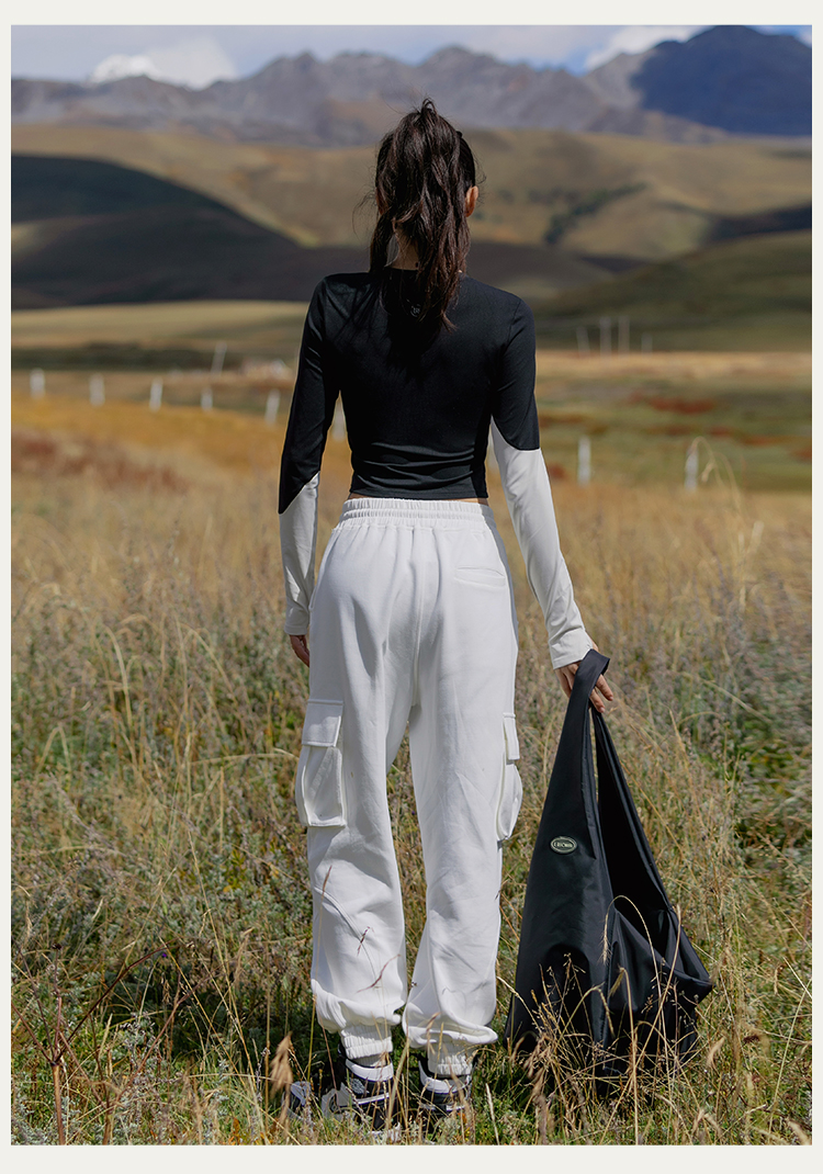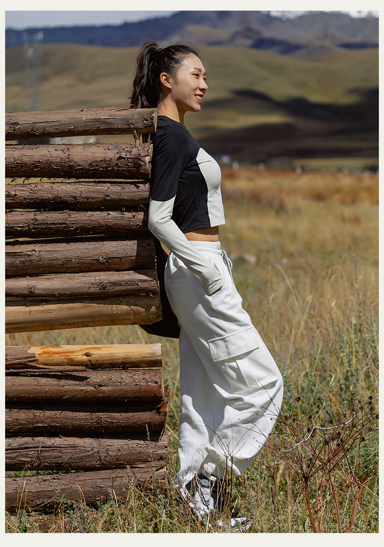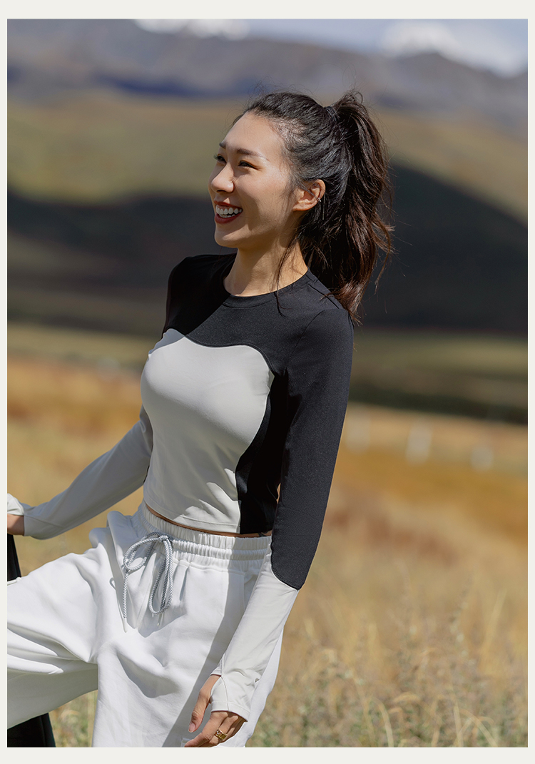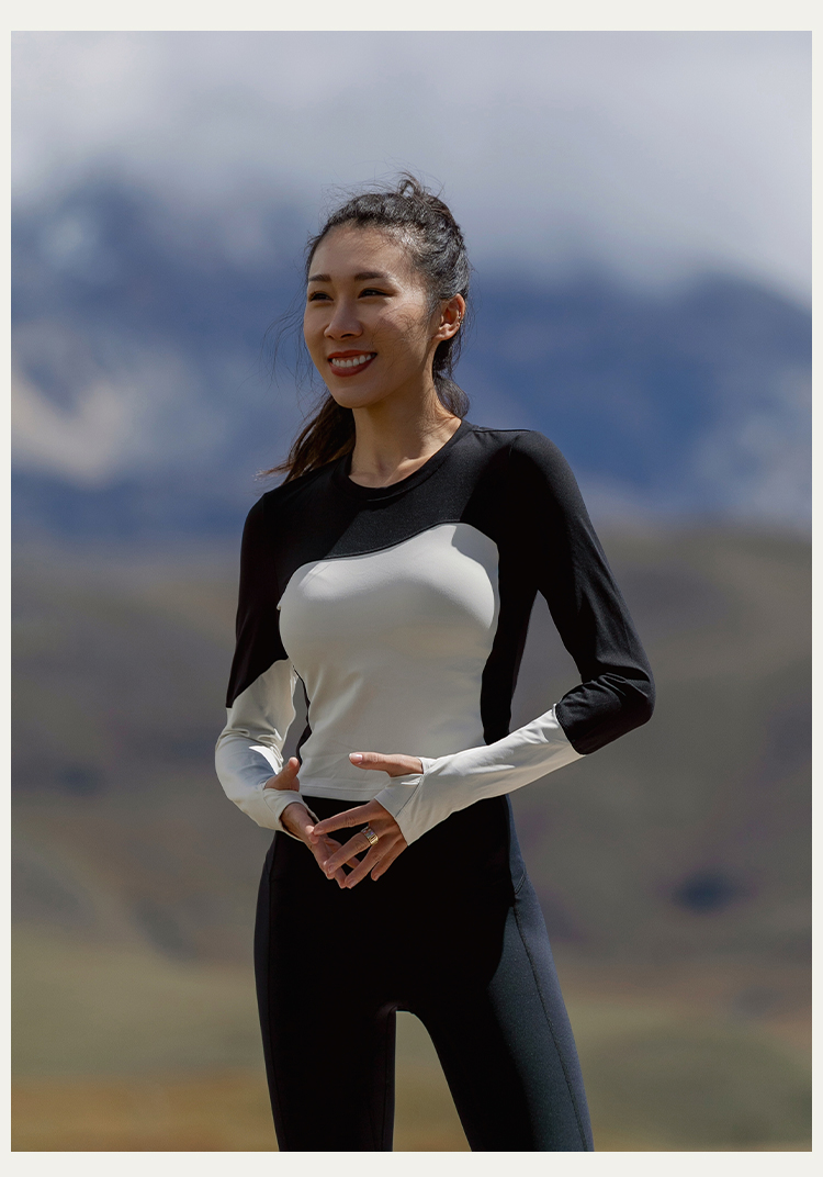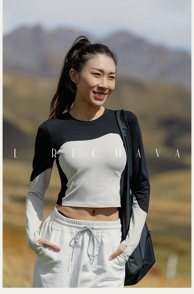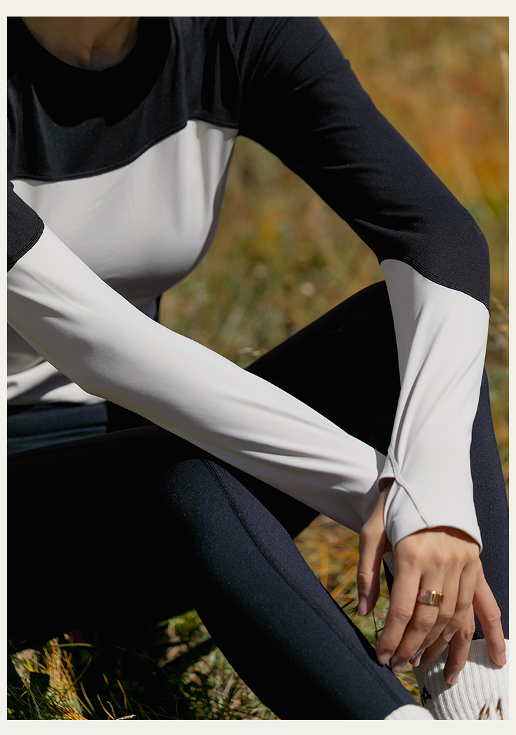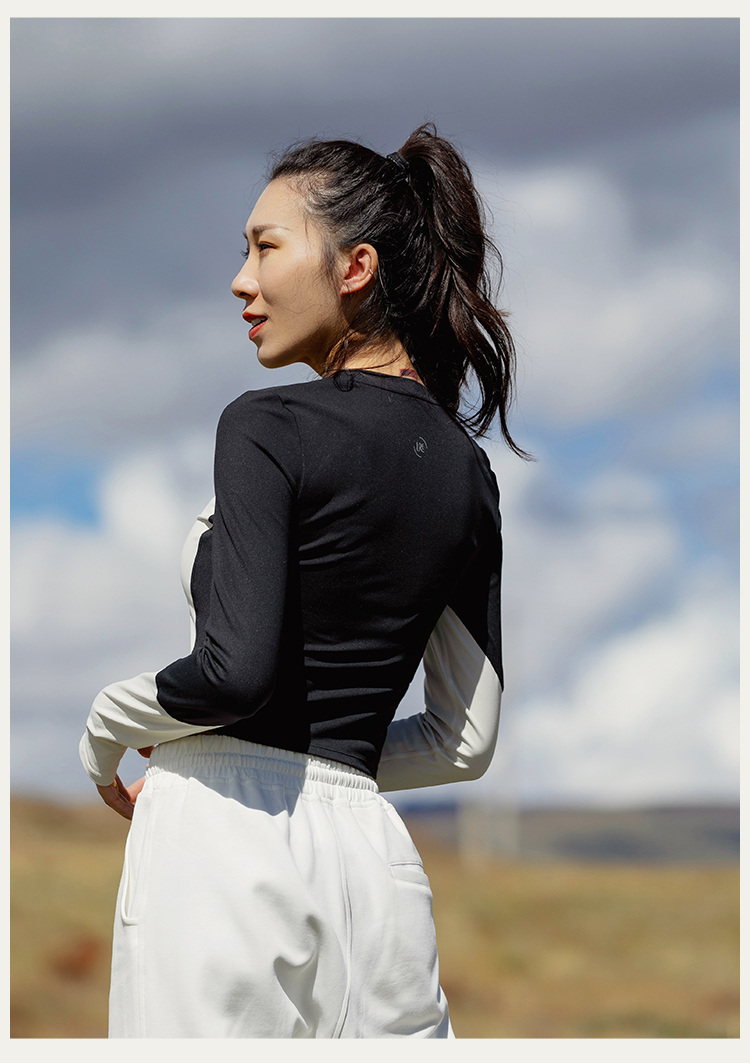 【裸感】圆领个性撞色修身长袖运动上衣