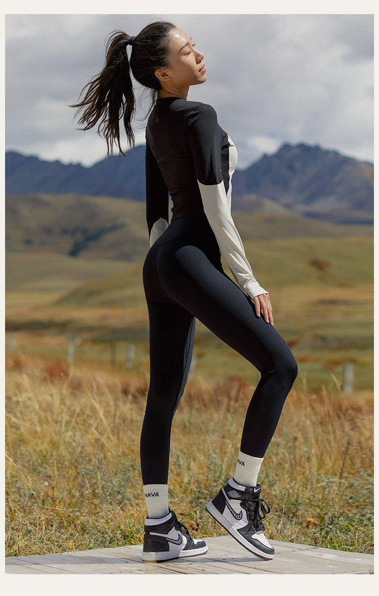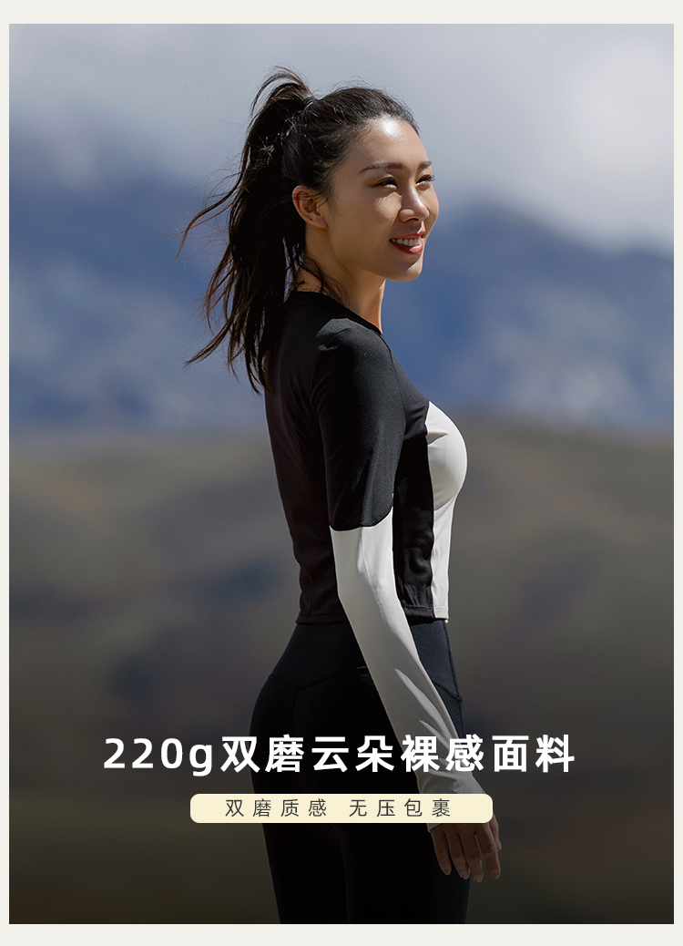 【裸感高弹】修身后背拼纱长袖
