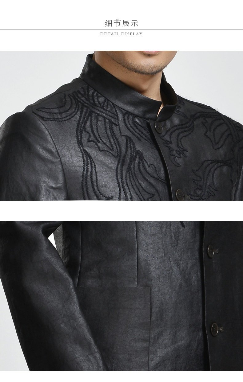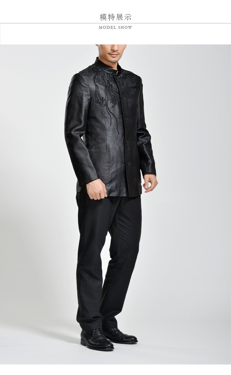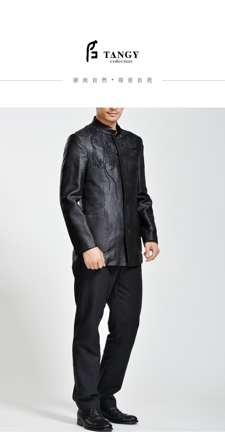TANGY Collection/天意精品秋冬款天宫图系列莨绸绣花立领男士外套