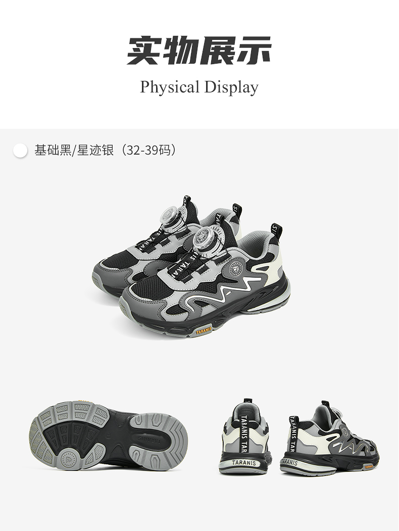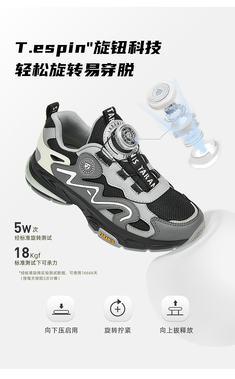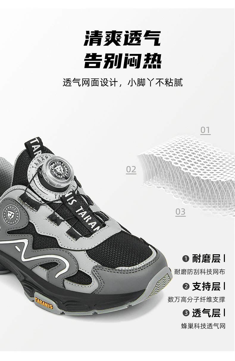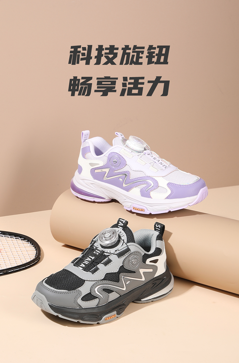 泰兰尼斯kids秋季新款儿童运动鞋男童户外跑步鞋旋转纽扣女童鞋子 T01D5C7372