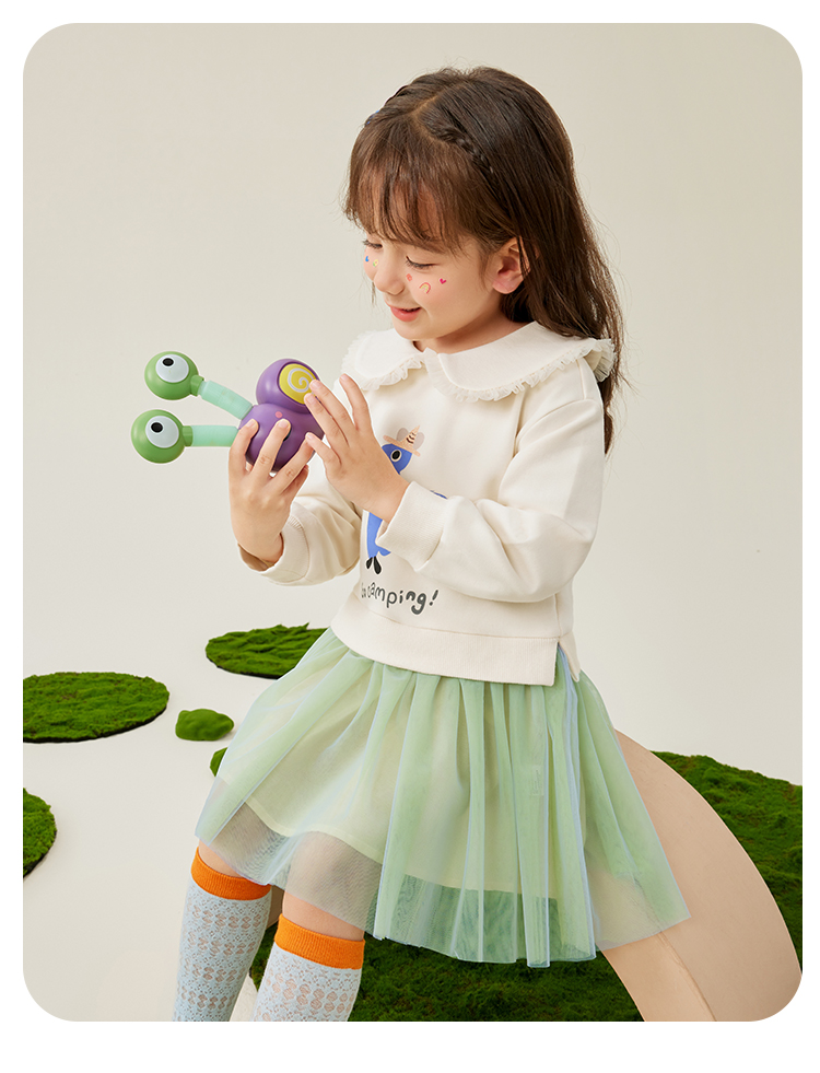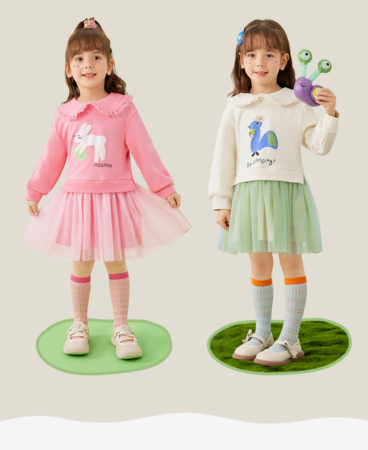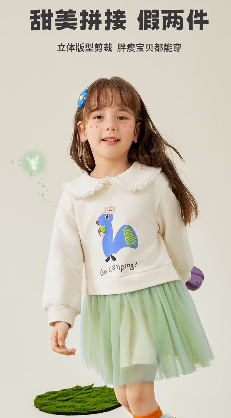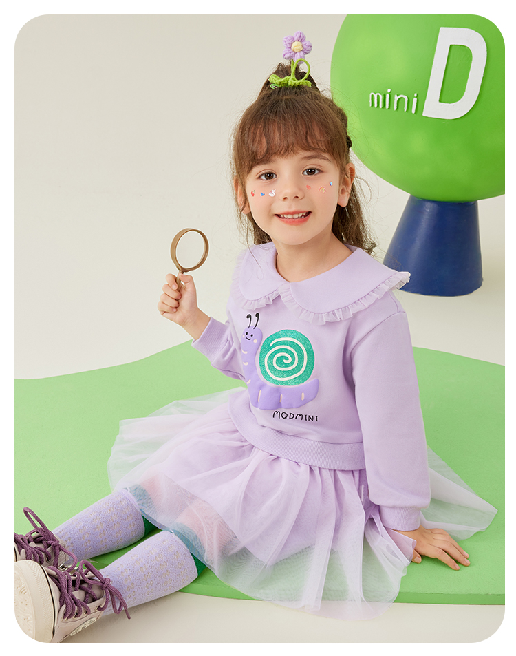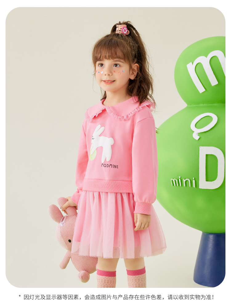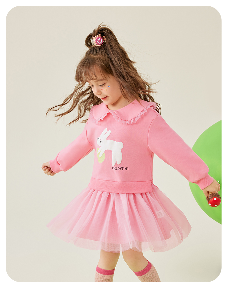 【90-130】【MQDmini】女童春秋长袖连衣裙拼接假两件网纱裙