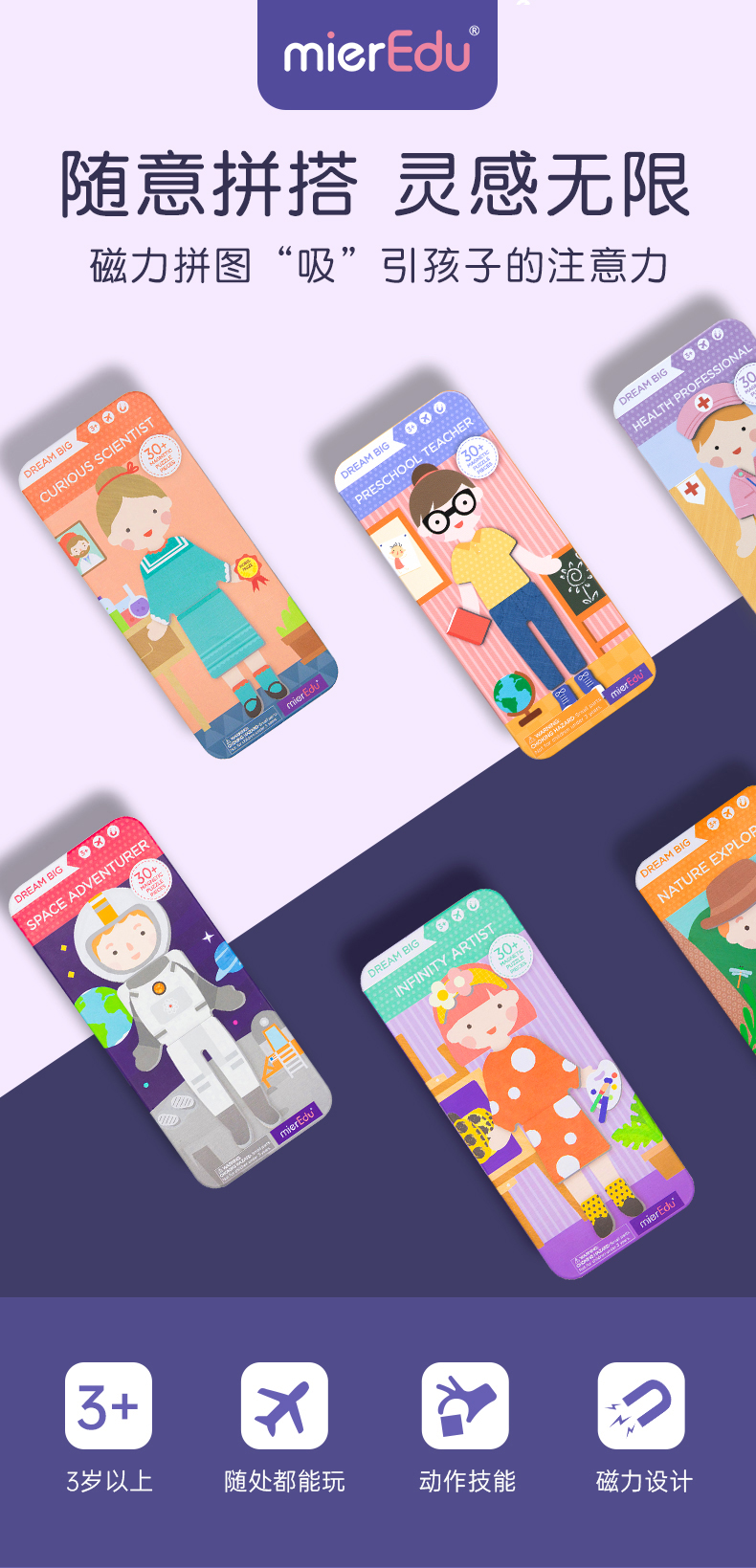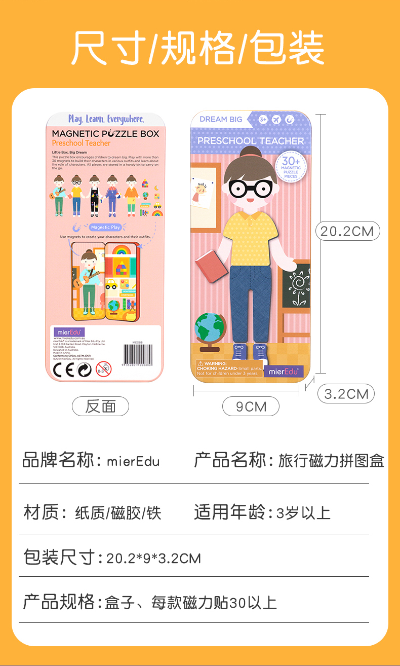 澳大利亚 澳米优mierEdu儿童早教职业认知换装玩具大梦想家磁力盒