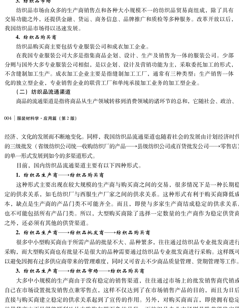 《服装材料学.应用篇(第2版)》为再版书,第2版的服装材料学仍然分基础篇和应用篇两篇,其特点是在介绍服装材料的类别、性能、风格及其构造方式和后整理等理论知识的基础上,将材料知识与服装造型风格、成衣生产工艺、市场和品质管理等应用知识相结合。《服装材料学.应用篇(第2版)》在同类教材中尚属首次,是一本较为完整、系统的理论与应用相结合、工艺和艺术与市场相结合的服装材料教材。它能帮助读者了解和认识服装材料,掌握服装材料再设计的能力。本书采用文字、表格、插图、光盘相结合的编写方法,力求简洁、明了和形象教学,各章章末附有专业术语、学习重点和思考题,启发和帮助读者学习和思考问题。