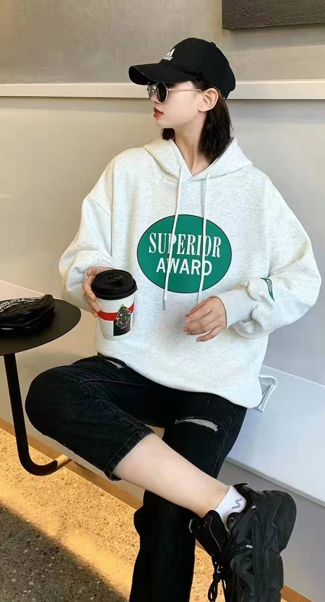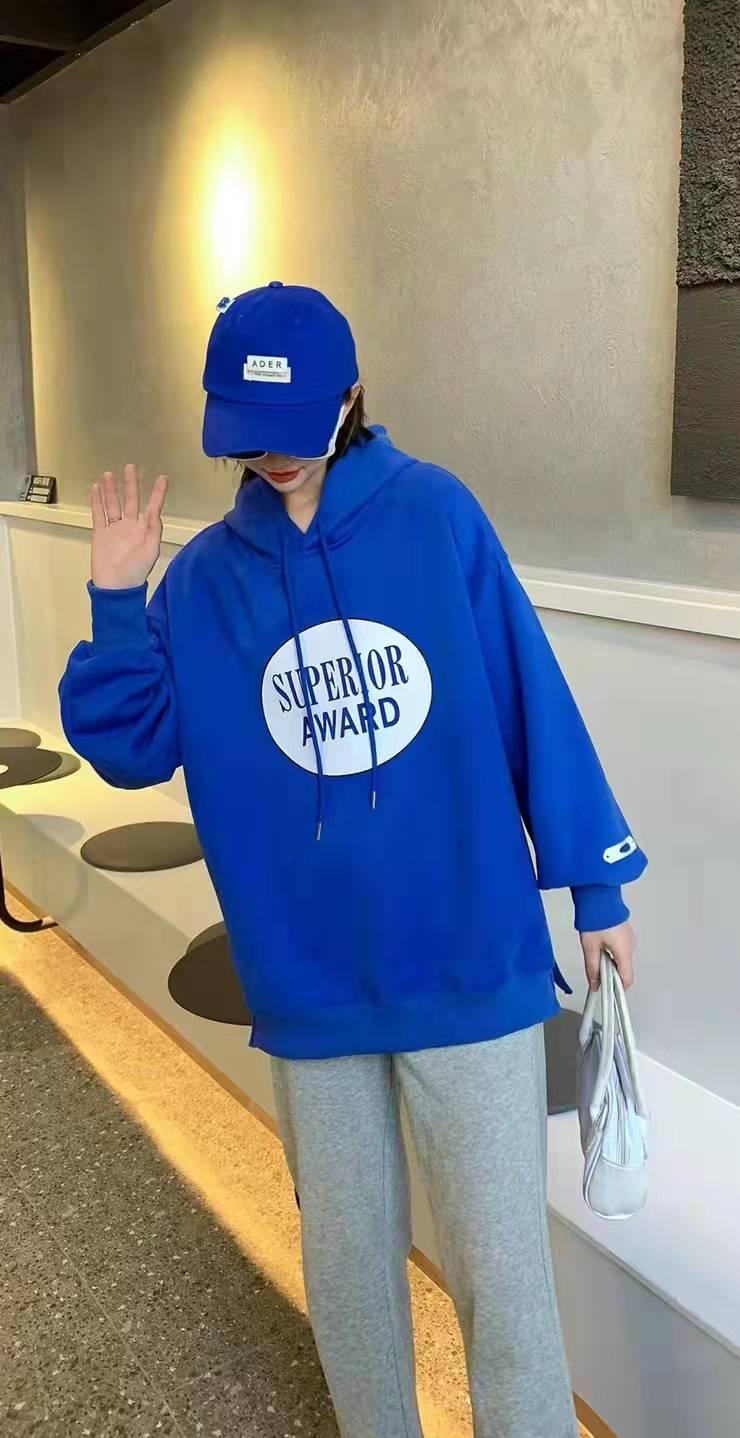 05028138加绒卫衣,均码号,100-150斤都可以穿,适合学生,以藏蓝,灰色为主打,白色辅助,面料以棉为主,透气性好,穿着舒适,搭配牛仔裤,运动裤。