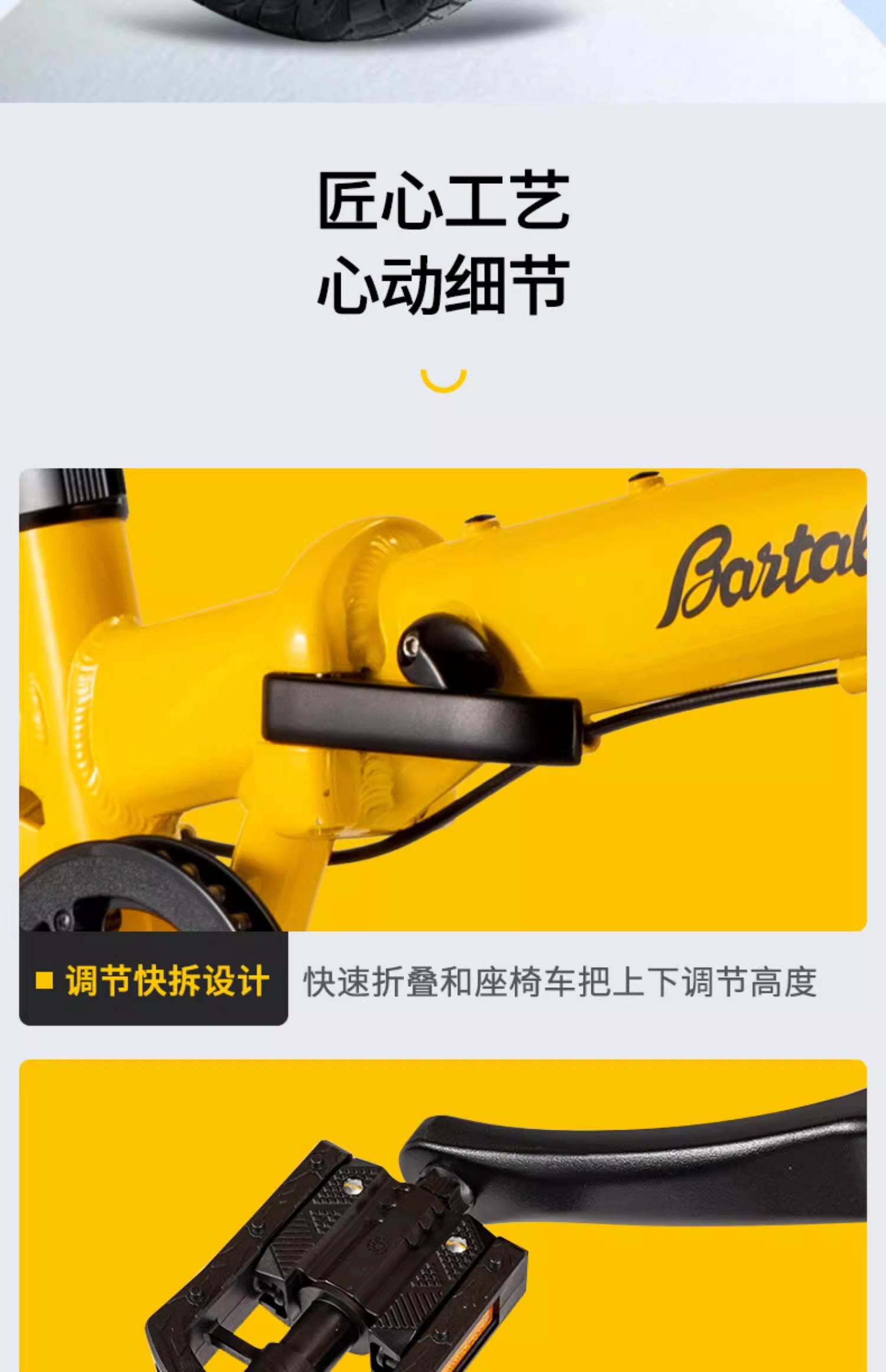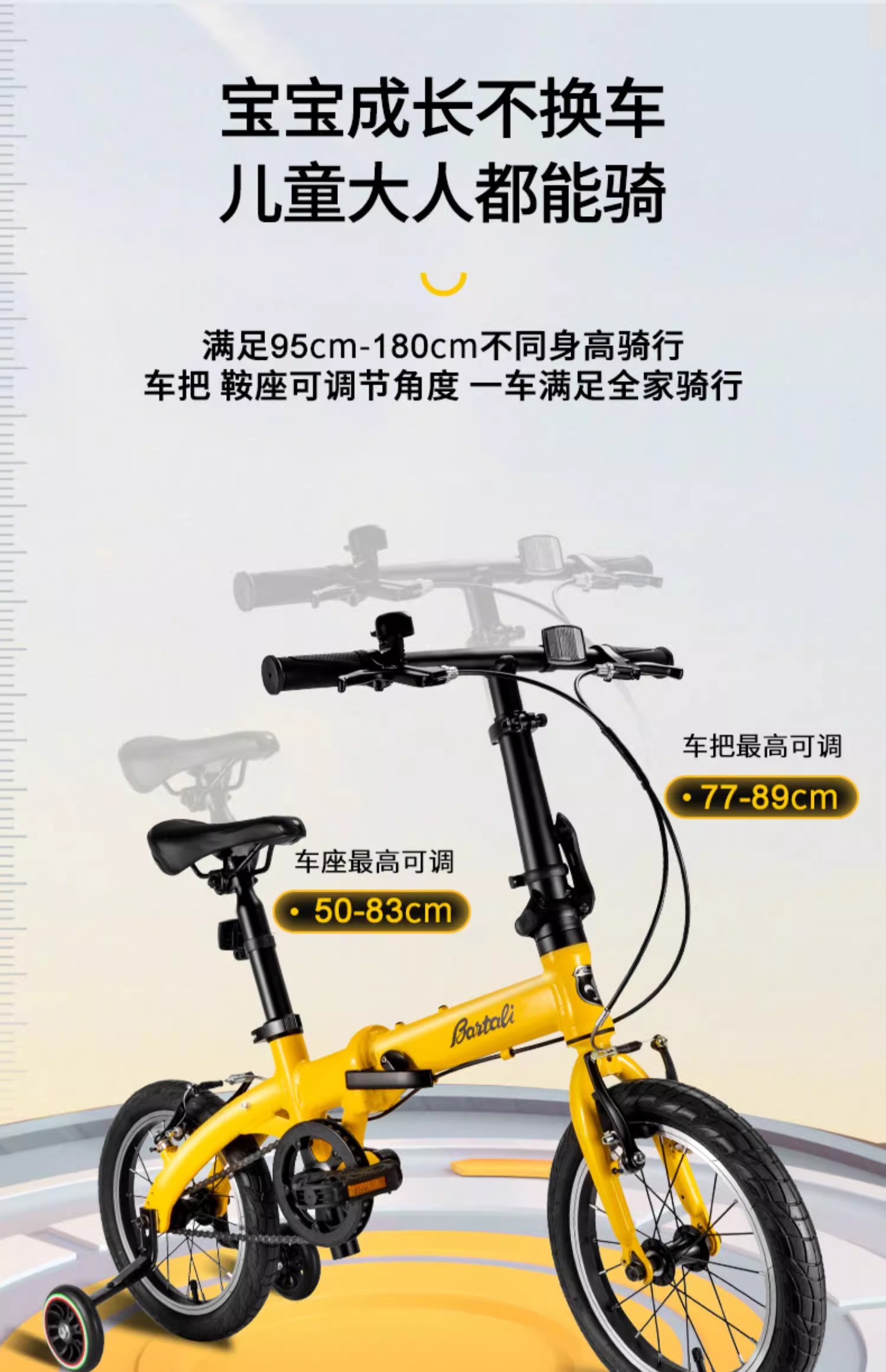 Bartali巴特力折叠自行车 14寸铝合金3岁以上儿童成人单车节日送礼