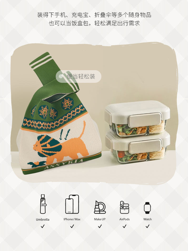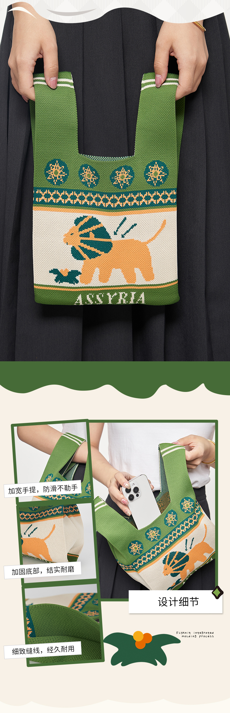 大英博物馆x苏州博物馆亚述系列 萌狮针织手提包