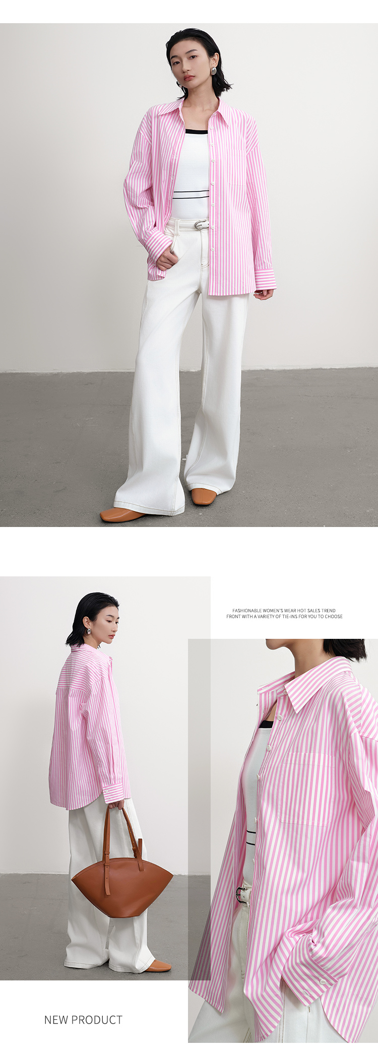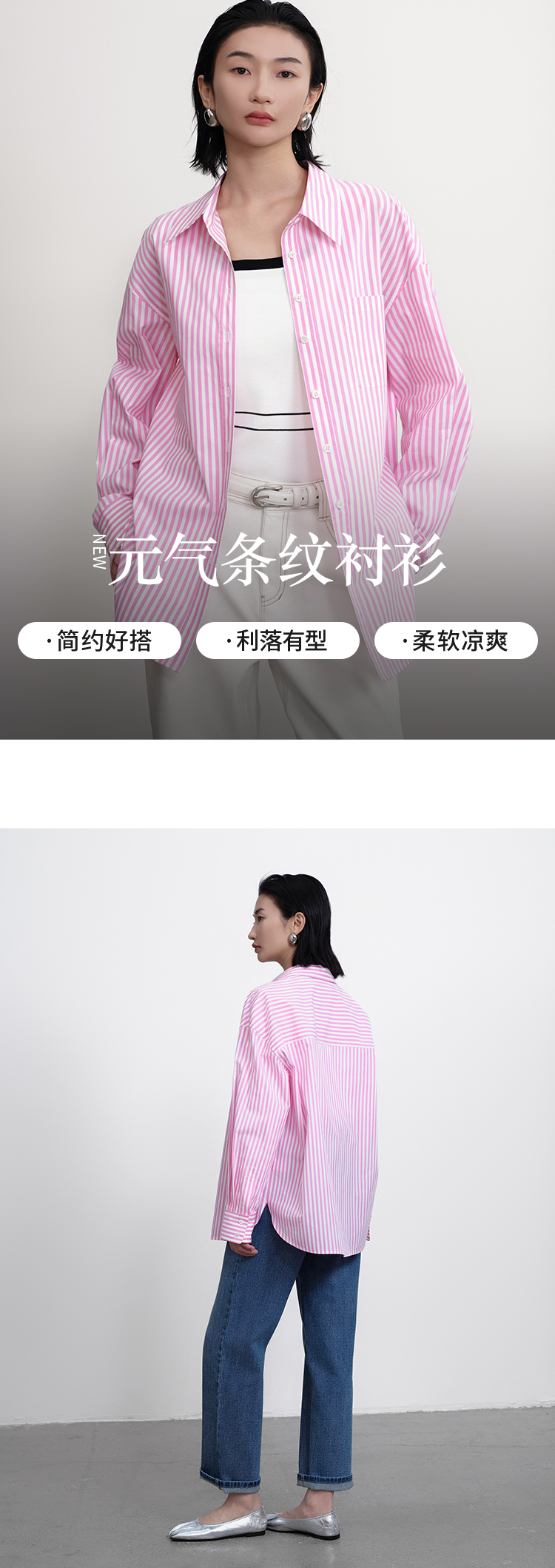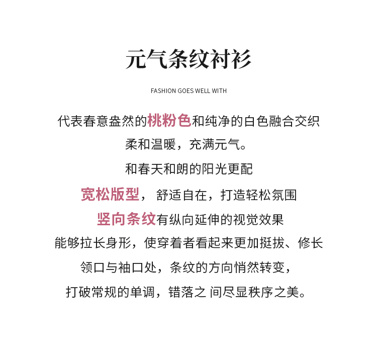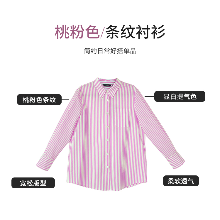 【商场同款】CNB5288 “ 元气条纹衬衫 ” 桃粉色条纹衬衫 宽松版型好穿减龄