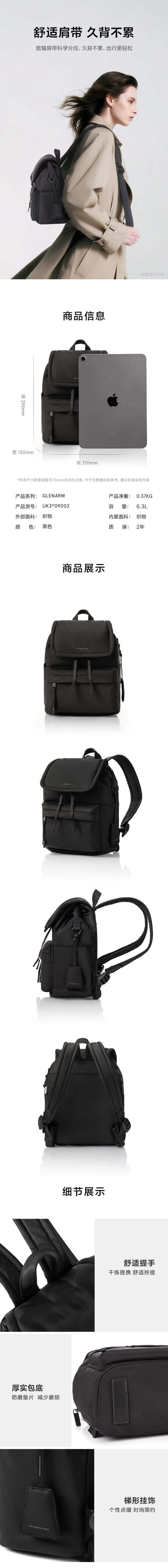 新秀丽GLENARM系列轻盈简约轻都市风翻盖双肩包UK3*002