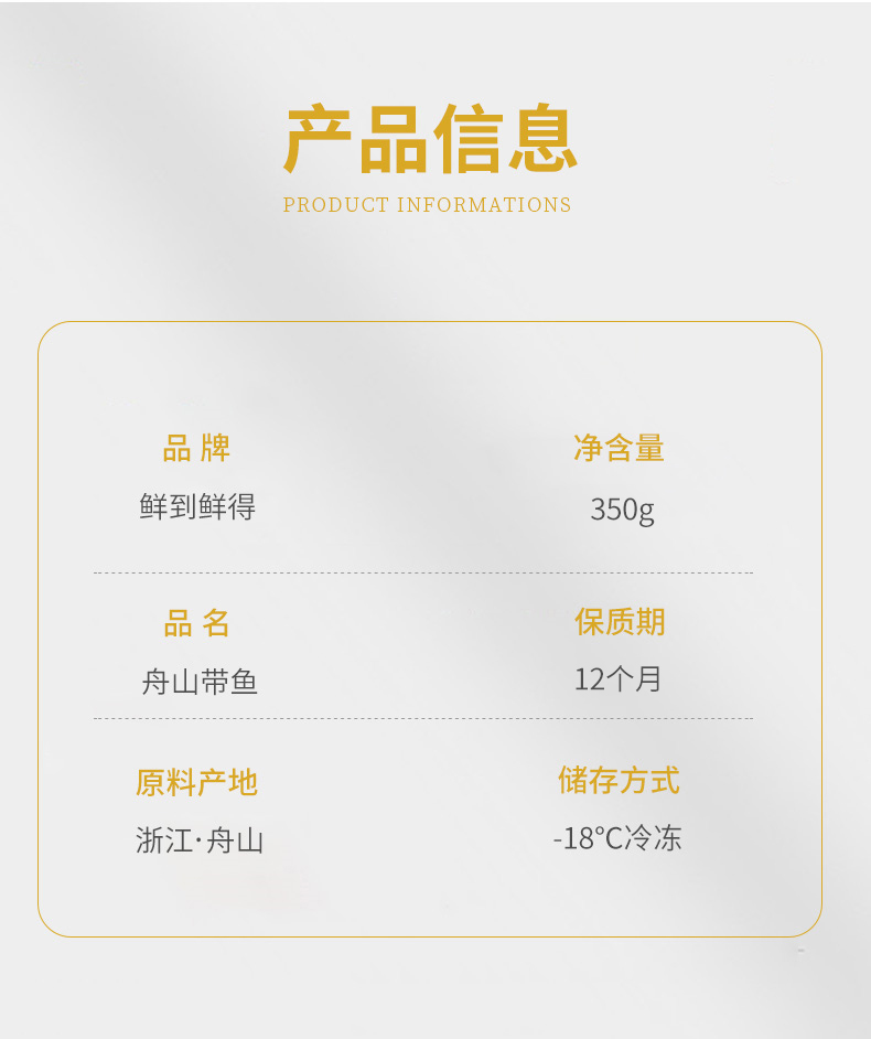 心选丨鲜到鲜得 舟山带鱼350g*5包 去头去尾切段不包冰