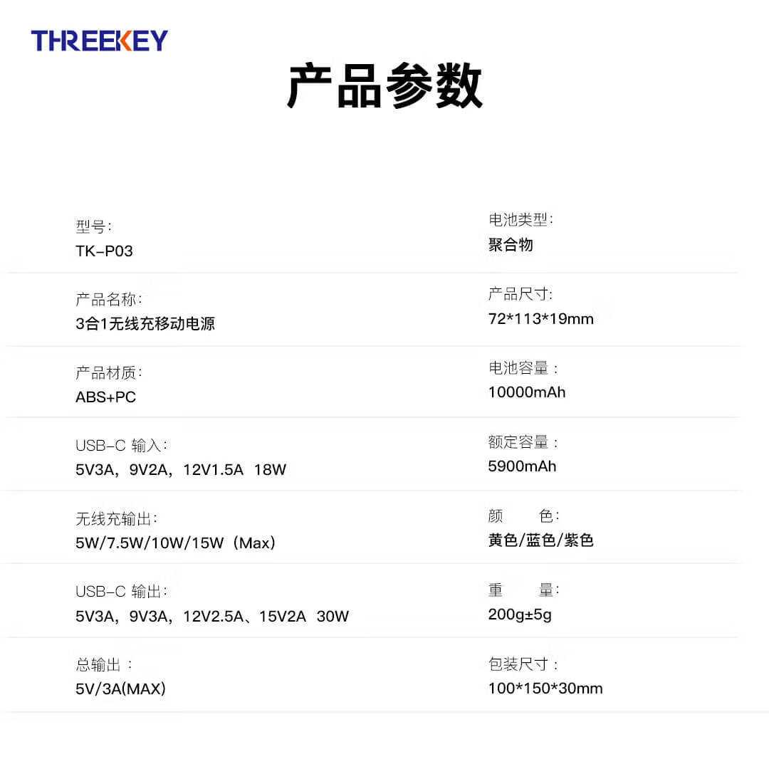 HREEKEY TK-P03 PD30W 10000mAh Magsafe磁吸收器无线与支架超薄便携式移动电源