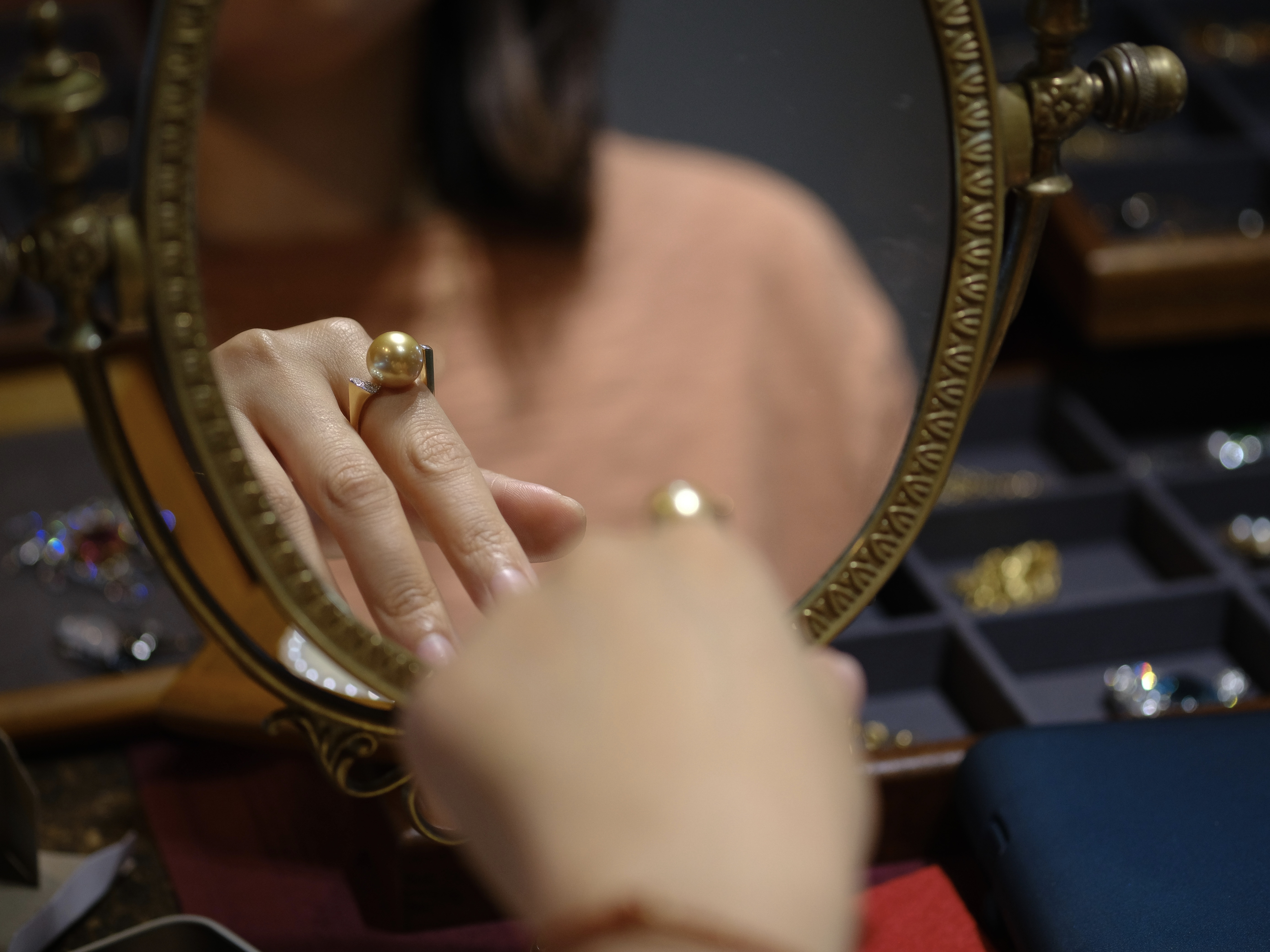 18K黄 无暇金珠 设计款 戒指