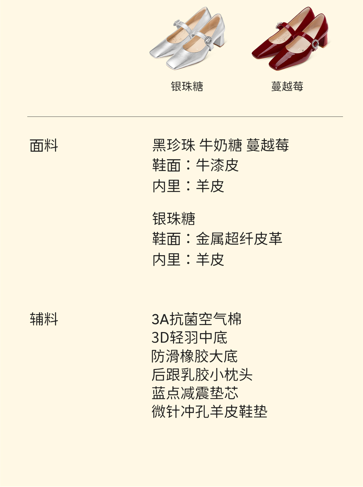 金靖同款7or9玛丽珍鞋空气棉高跟鞋蔓越莓/黑珍珠/银珠糖/牛奶糖