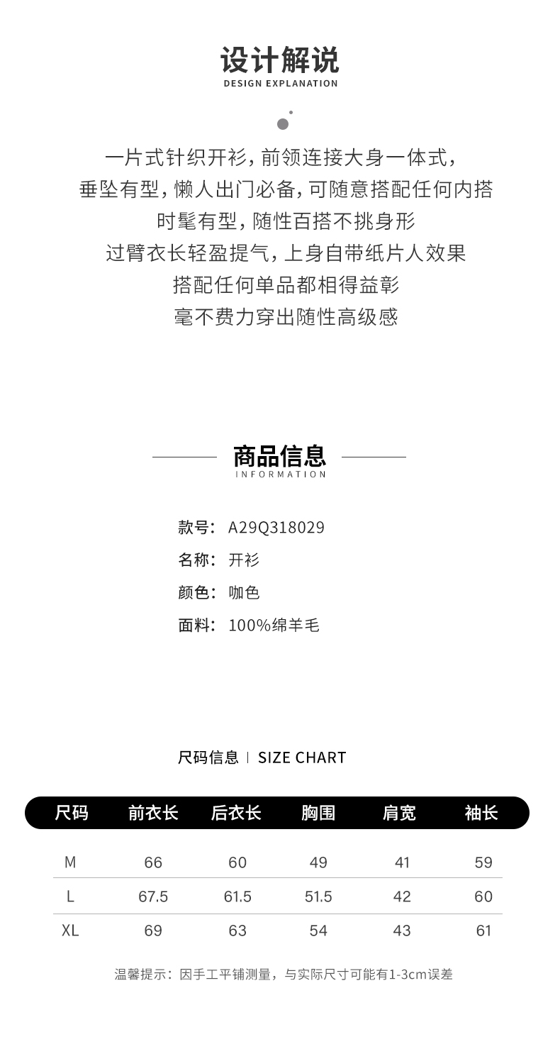 【商场同款】阿菁娜2024秋季新款一片式针织开衫A29Q318029