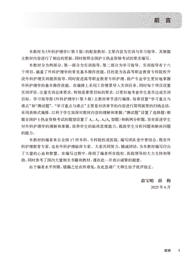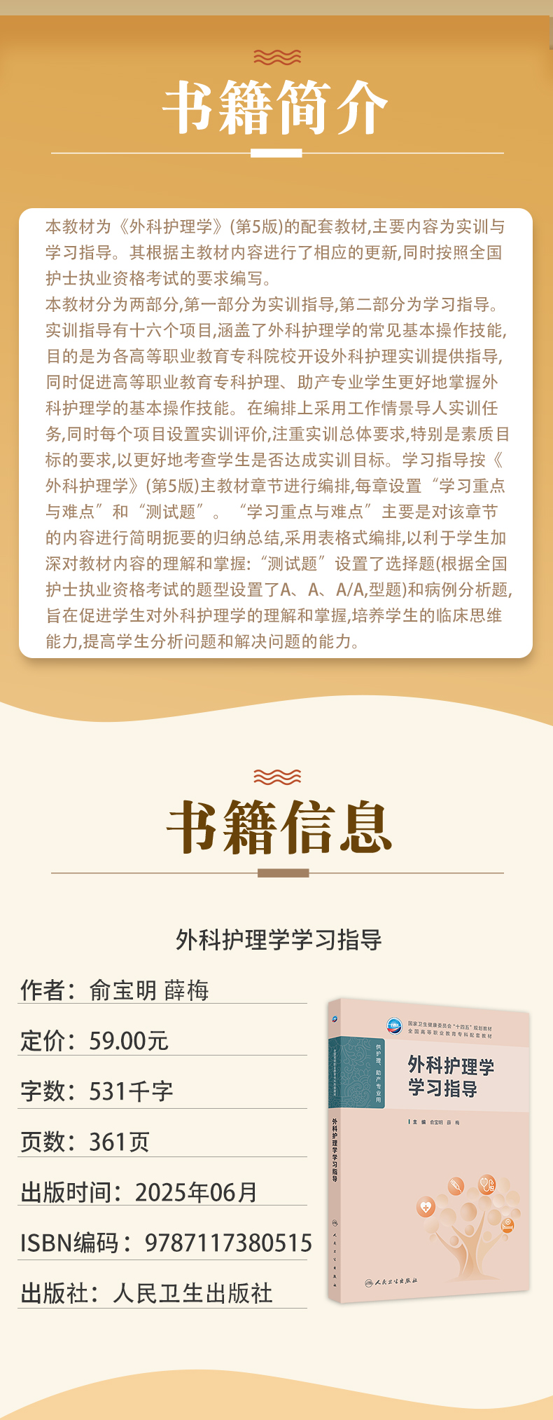 外科护理学学习指导 十四五规划教材全国高等职业教育专科配套教材 俞宝明 薛梅 供护理助产专业用 9787117380515人民卫生出版社
