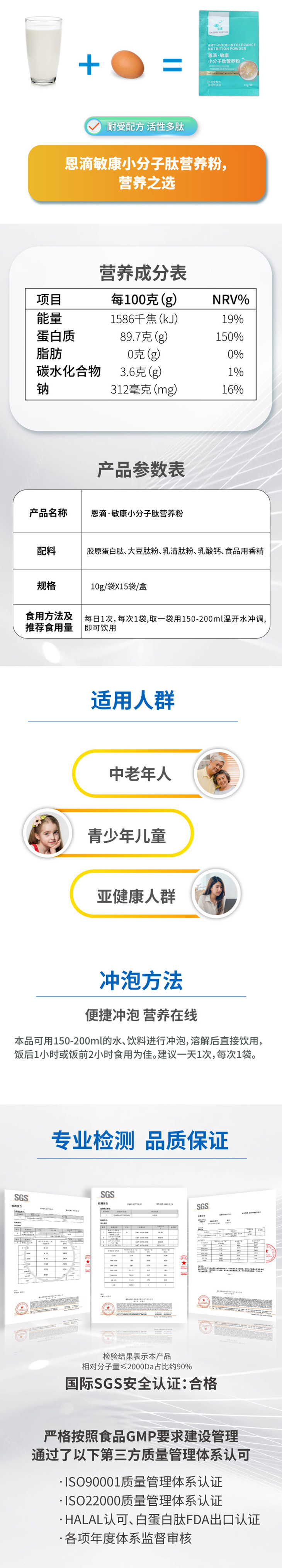 恩滴·敏康小分子肽营养粉10g/袋×15袋 低敏配方专为敏人群定制