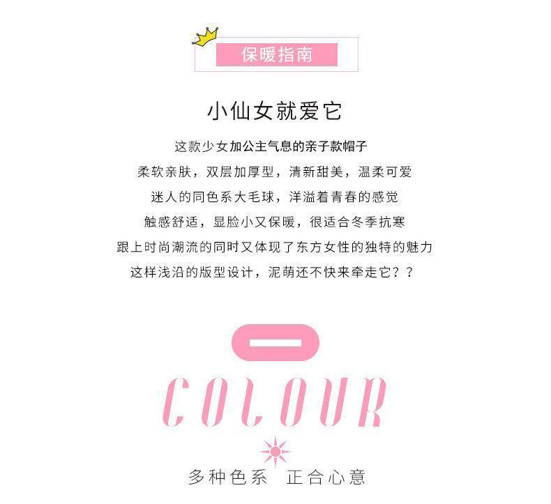 【清新甜美!温柔可爱】亲子款儿童帽子冬可爱女童公主帽秋冬季加绒保暖针织护耳帽毛线帽。ry