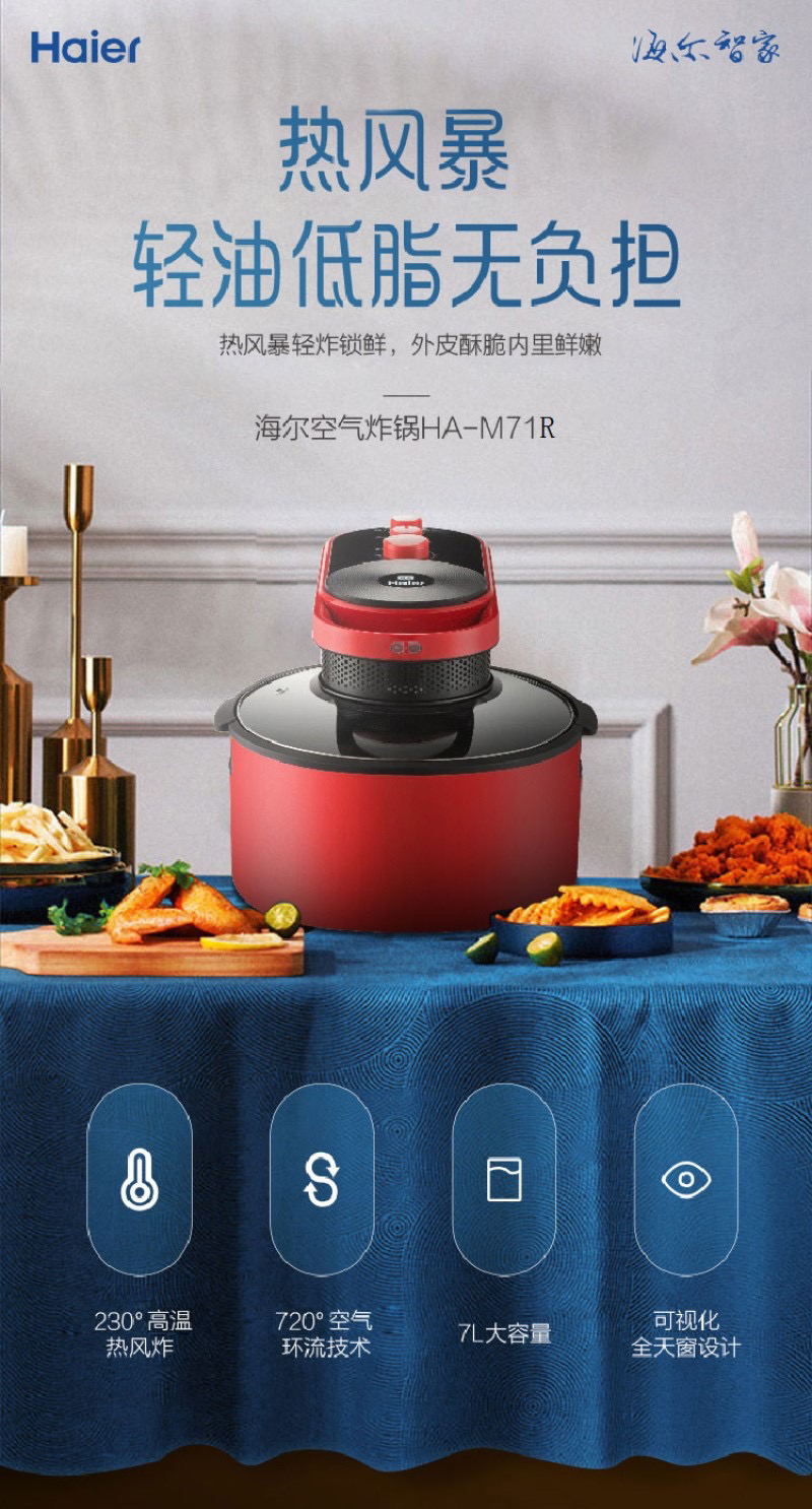 海尔(Haier)空气炸锅 HA-M71R 红色