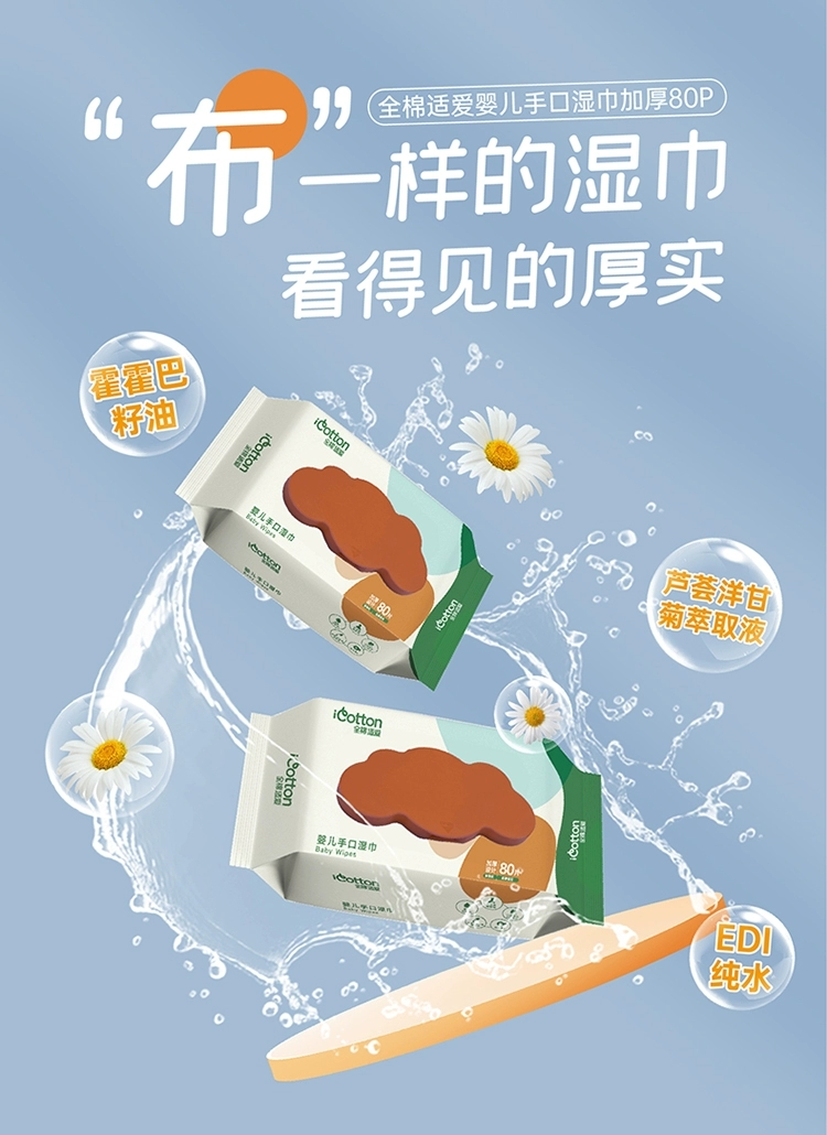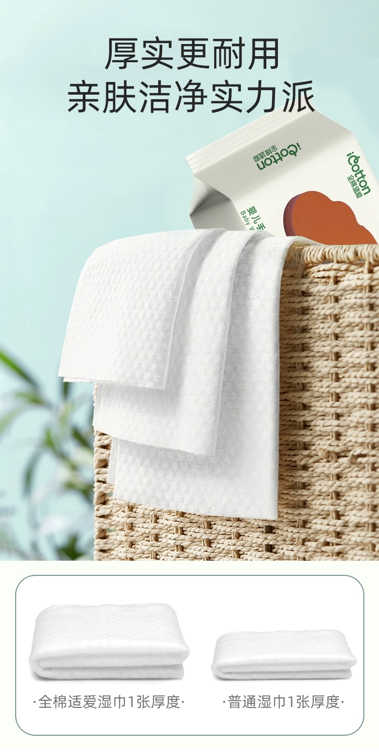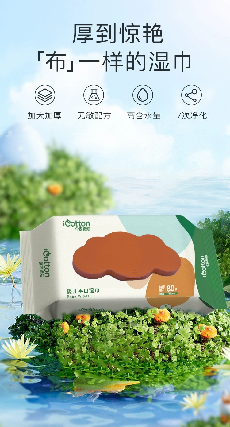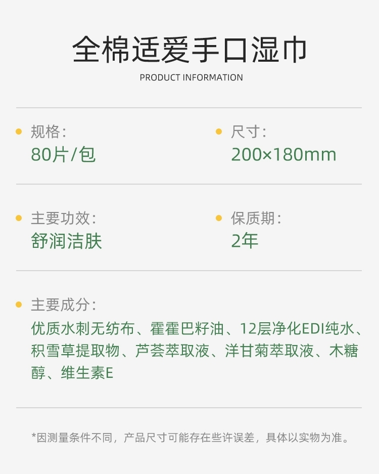 全棉适爱 婴儿手口湿巾80抽 加大加厚