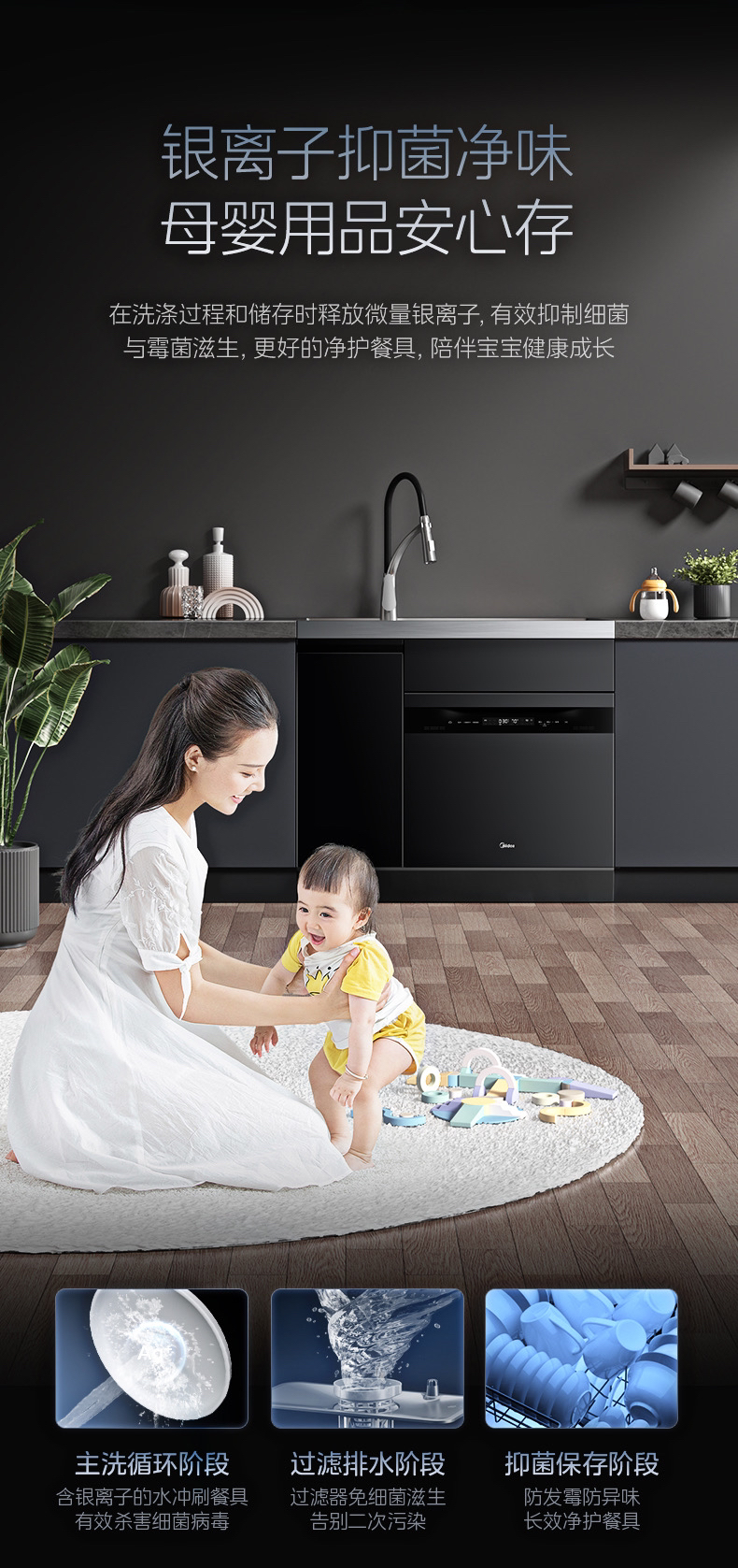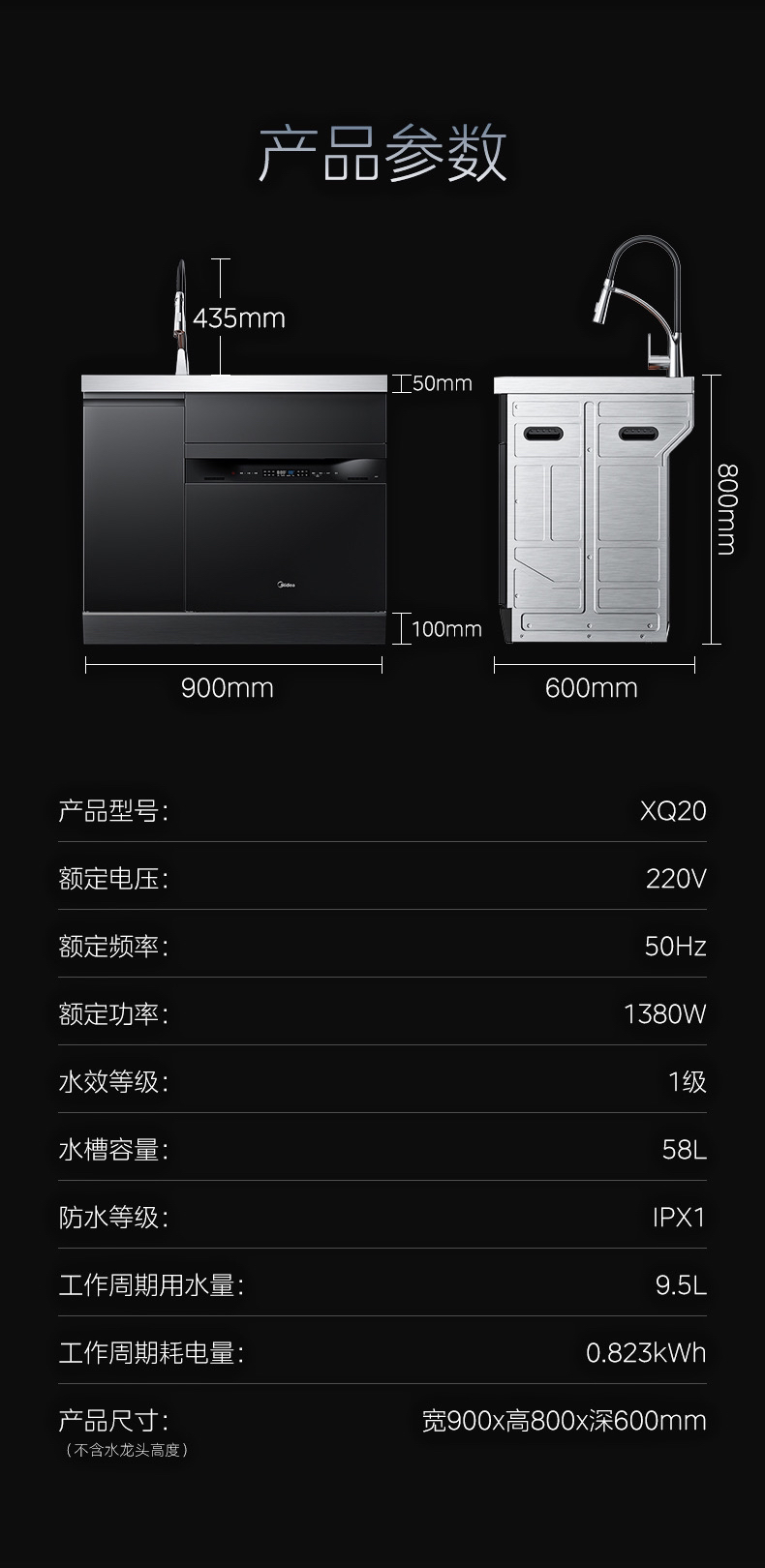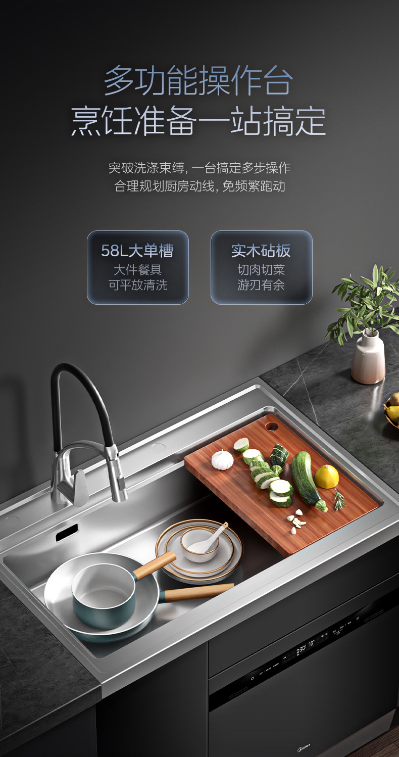 美的(Midea)洗碗机 XQ20 集成水槽 拉伸单槽