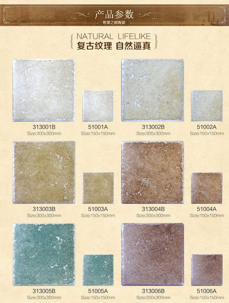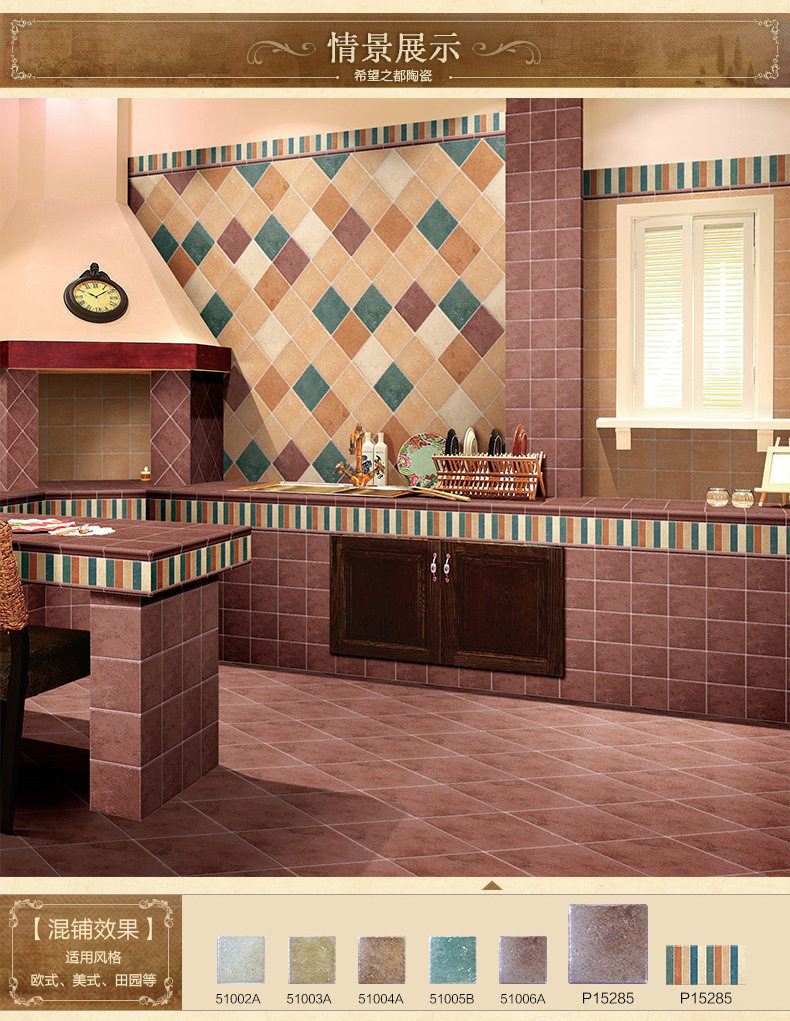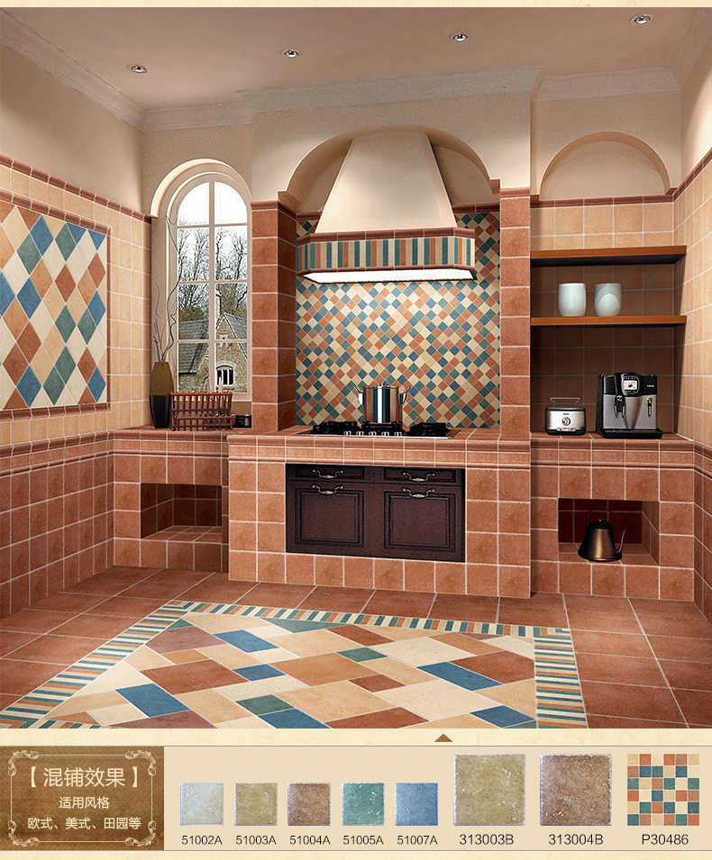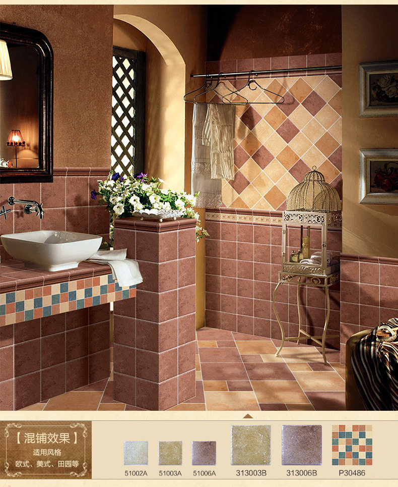 五彩佛山美式150300150*地中海仿古墙砖*清新阳台小工厂内墙300
