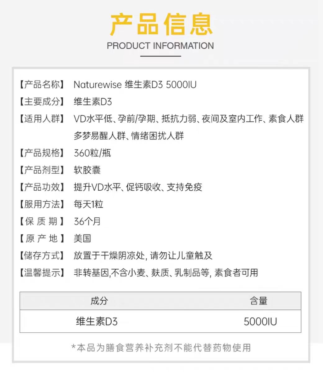 阳光瓶D3 维生素360粒/瓶