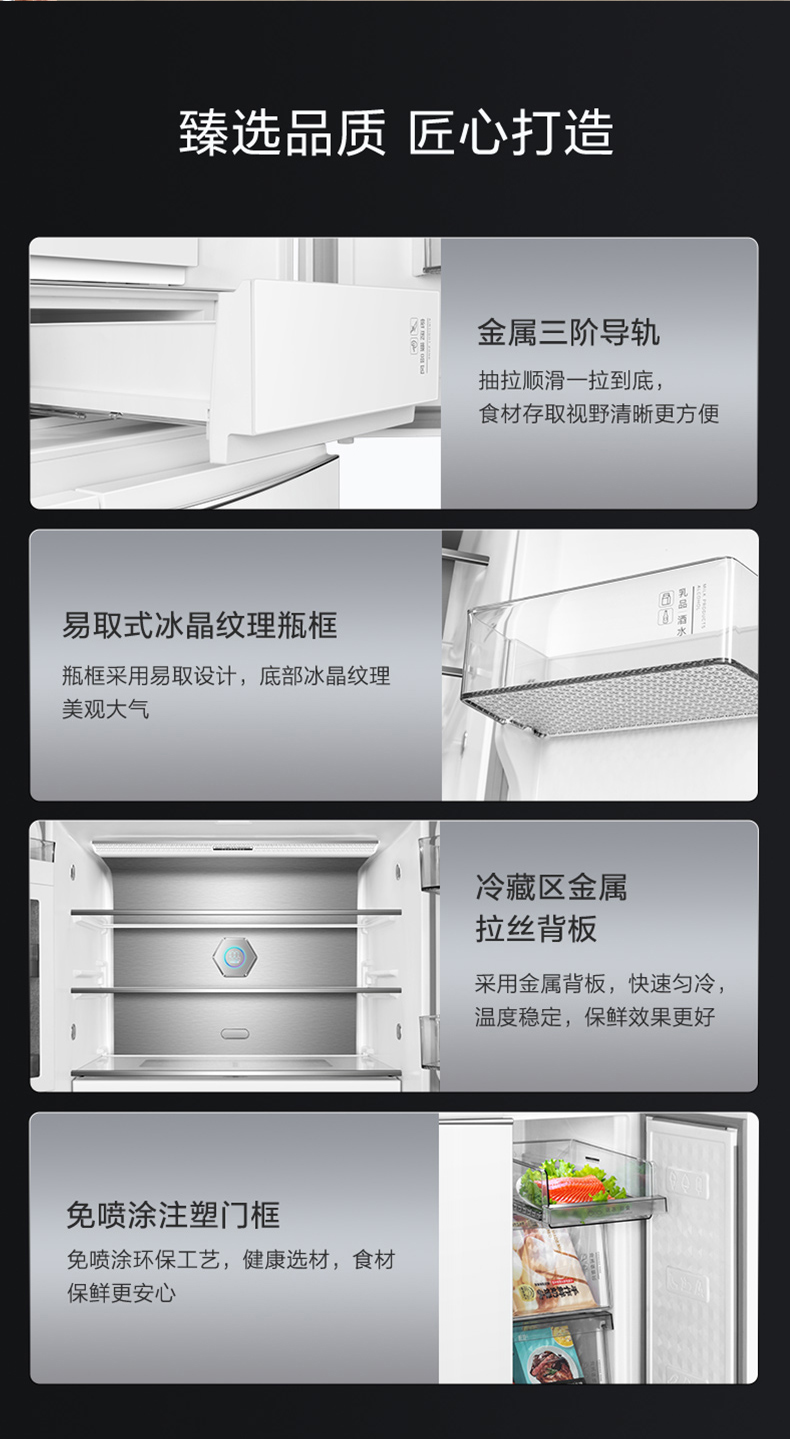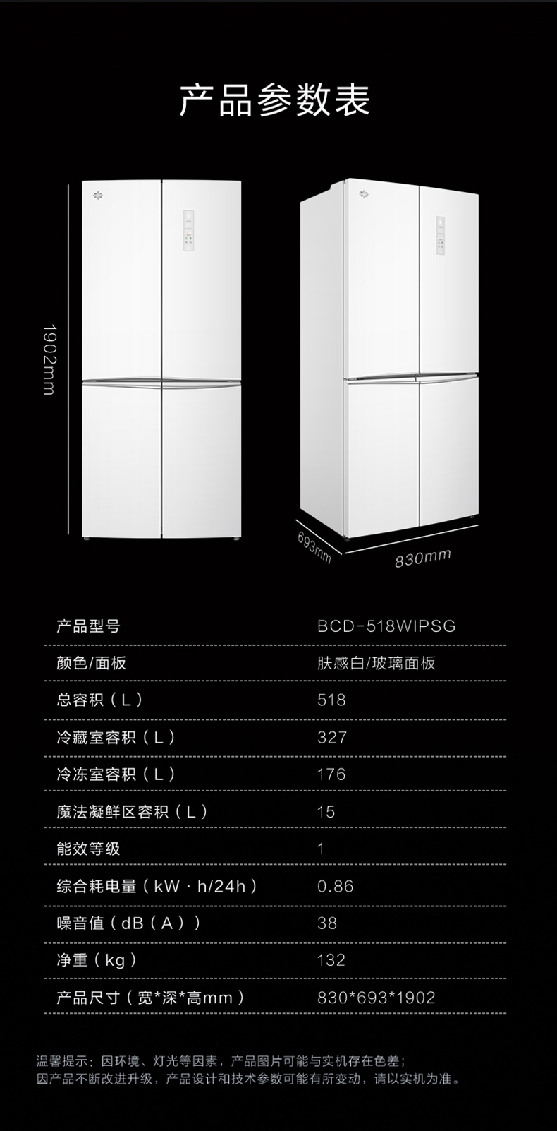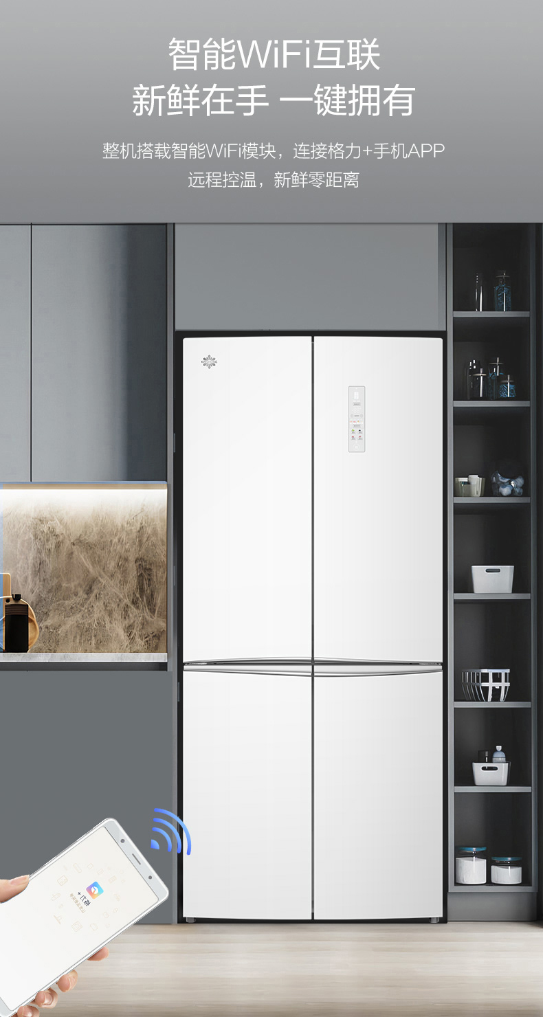 晶弘十字对开门鲜花冰箱 518L 全域养鲜 除菌净味 BCD-518WIPSG/肤感白