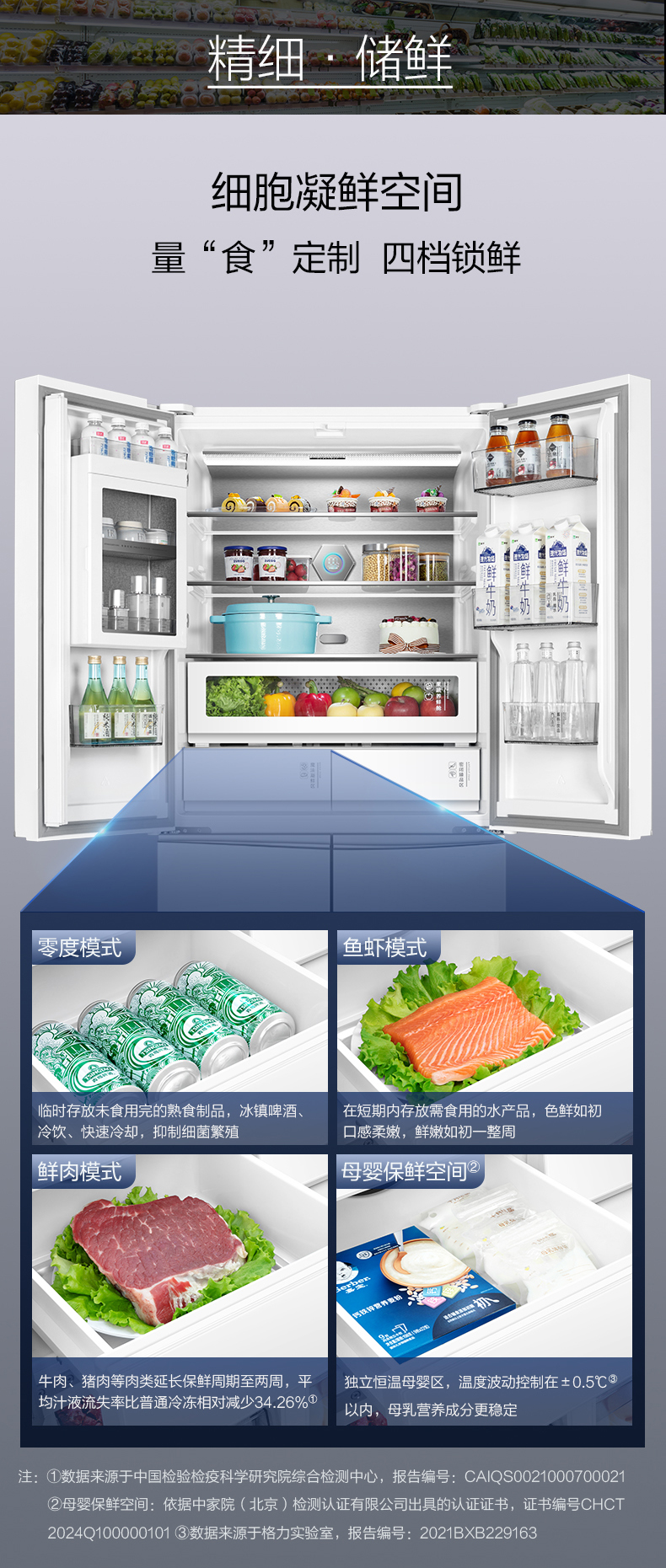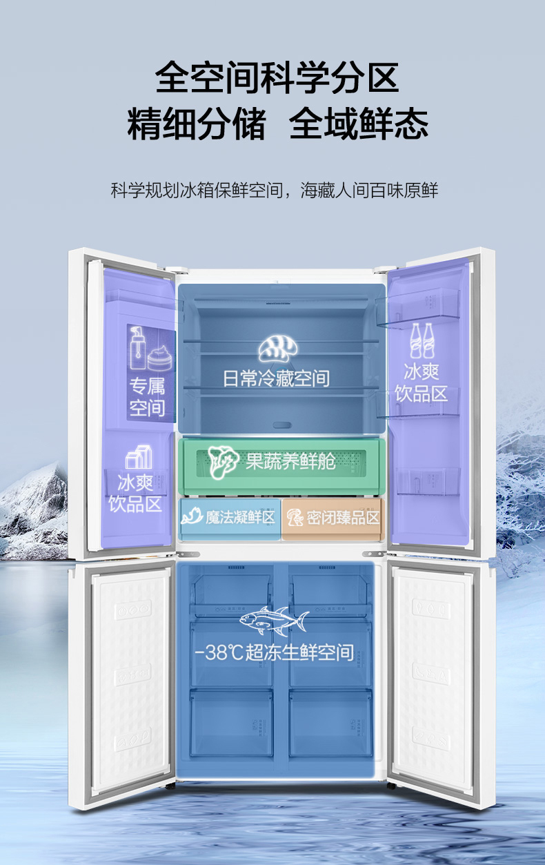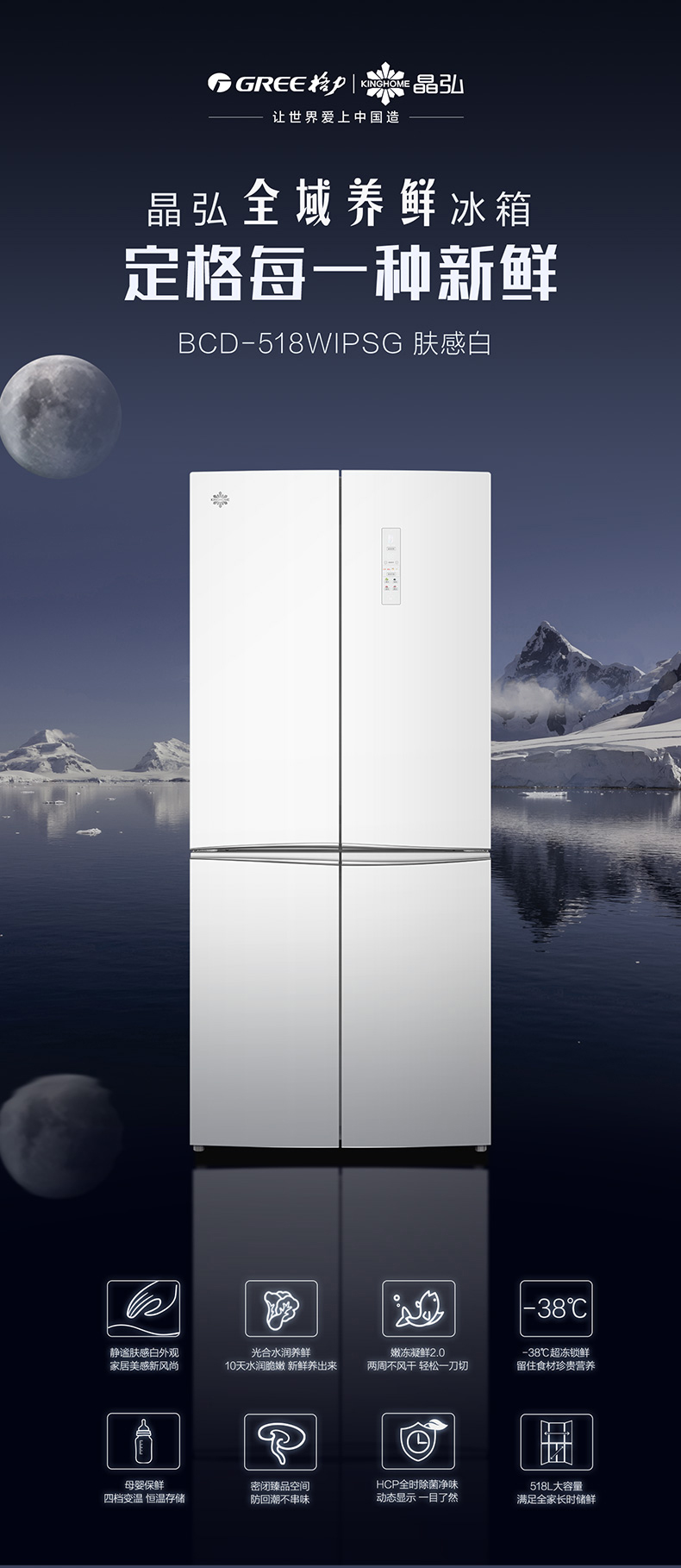 晶弘十字对开门鲜花冰箱 518L 全域养鲜 除菌净味 BCD-518WIPSG/肤感白