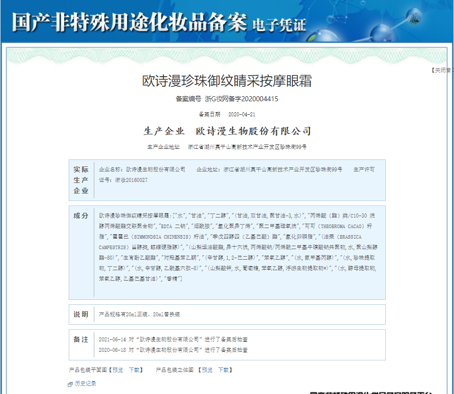 【买一送二】欧诗漫 珍珠御纹睛采按摩眼霜 电动按摩 淡化细纹fx