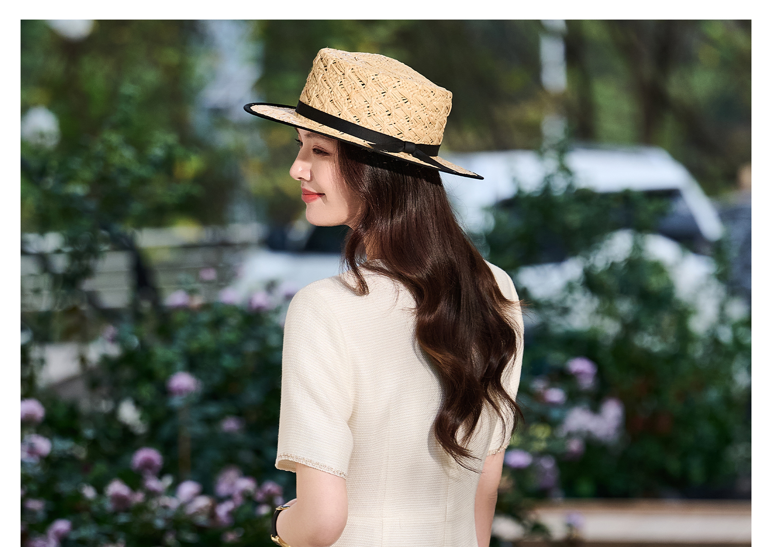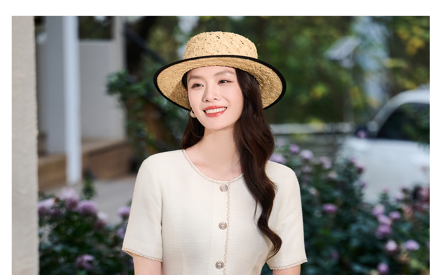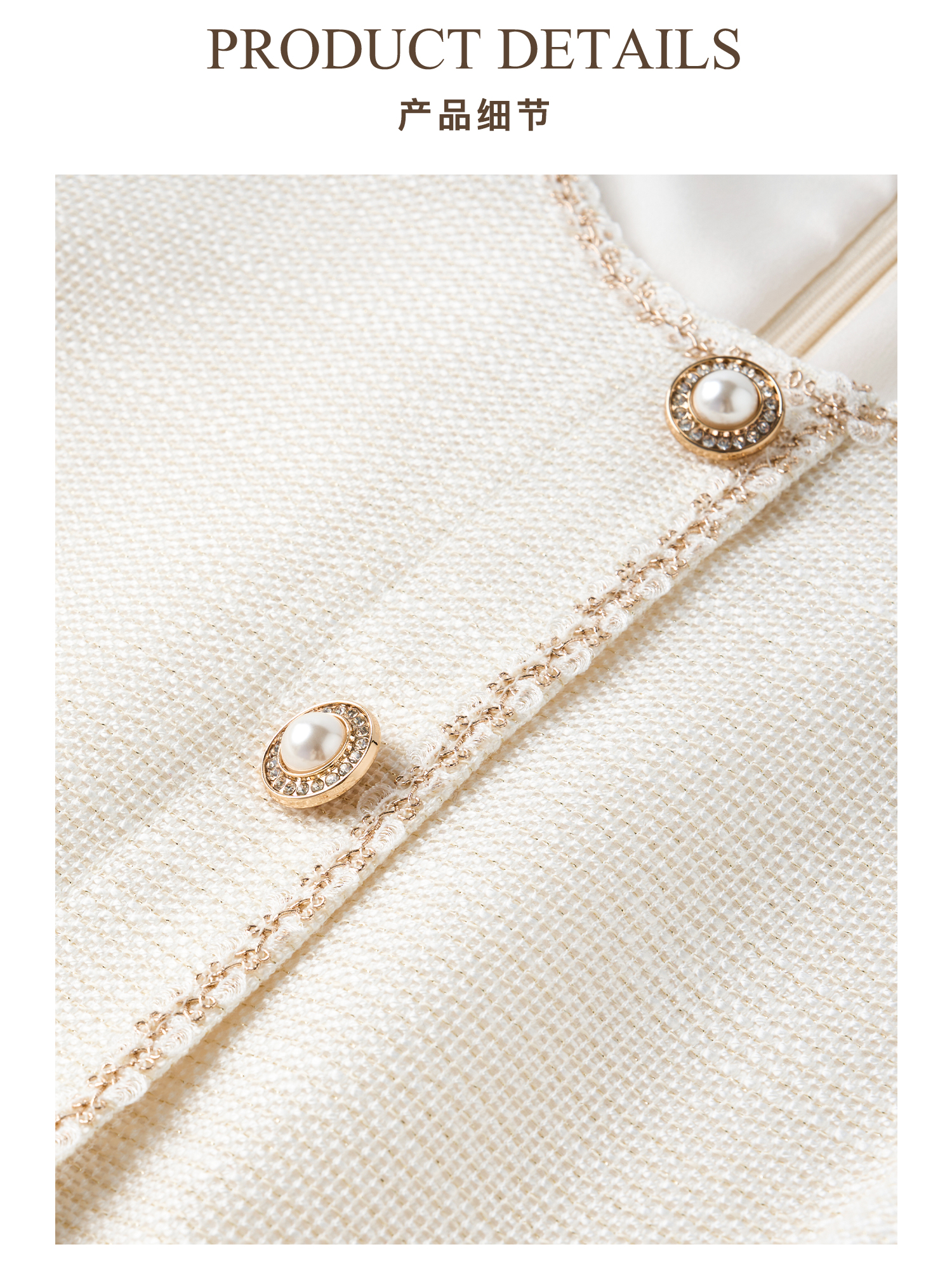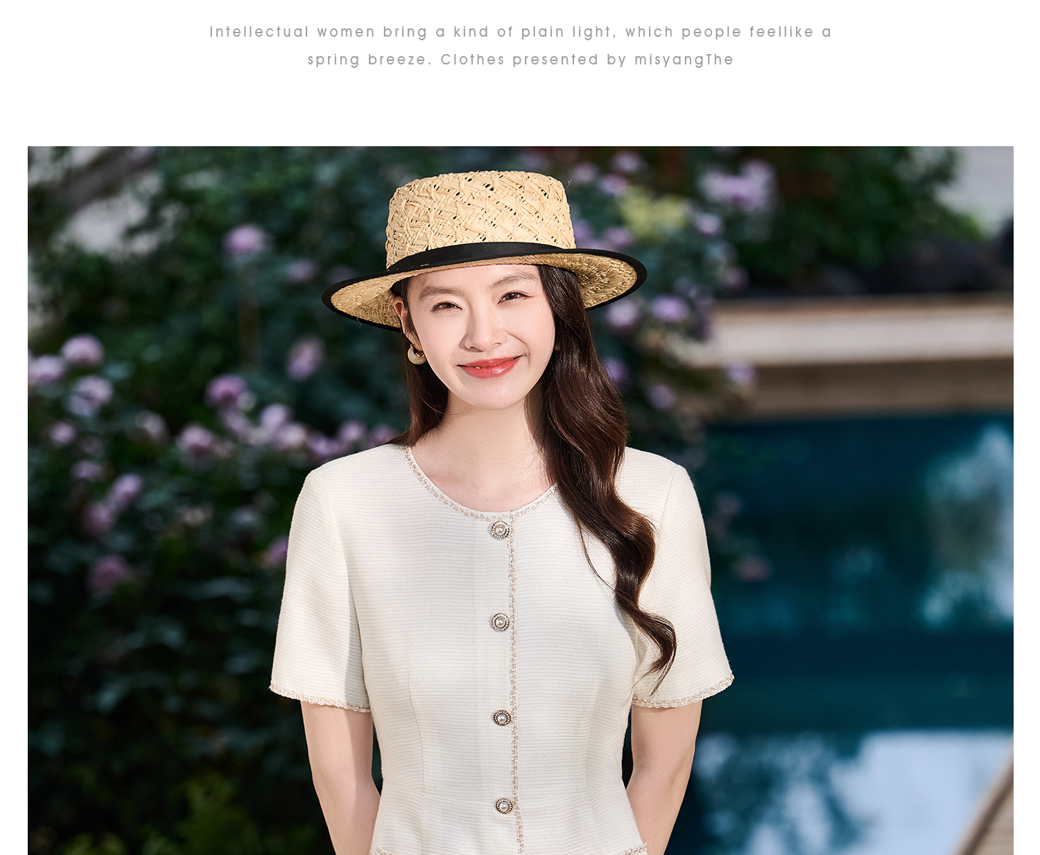 米思阳2026春新款知性优雅小香风肌理感修身圆领短袖纽扣A字裙连衣裙女5986