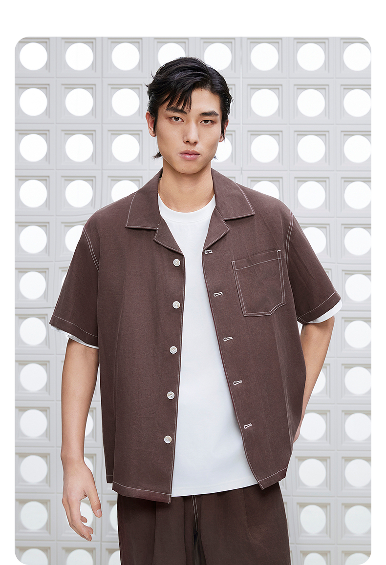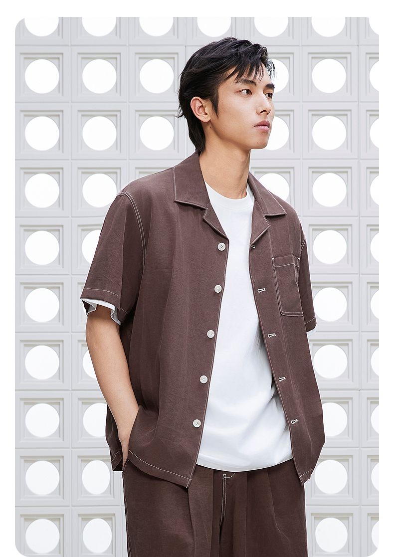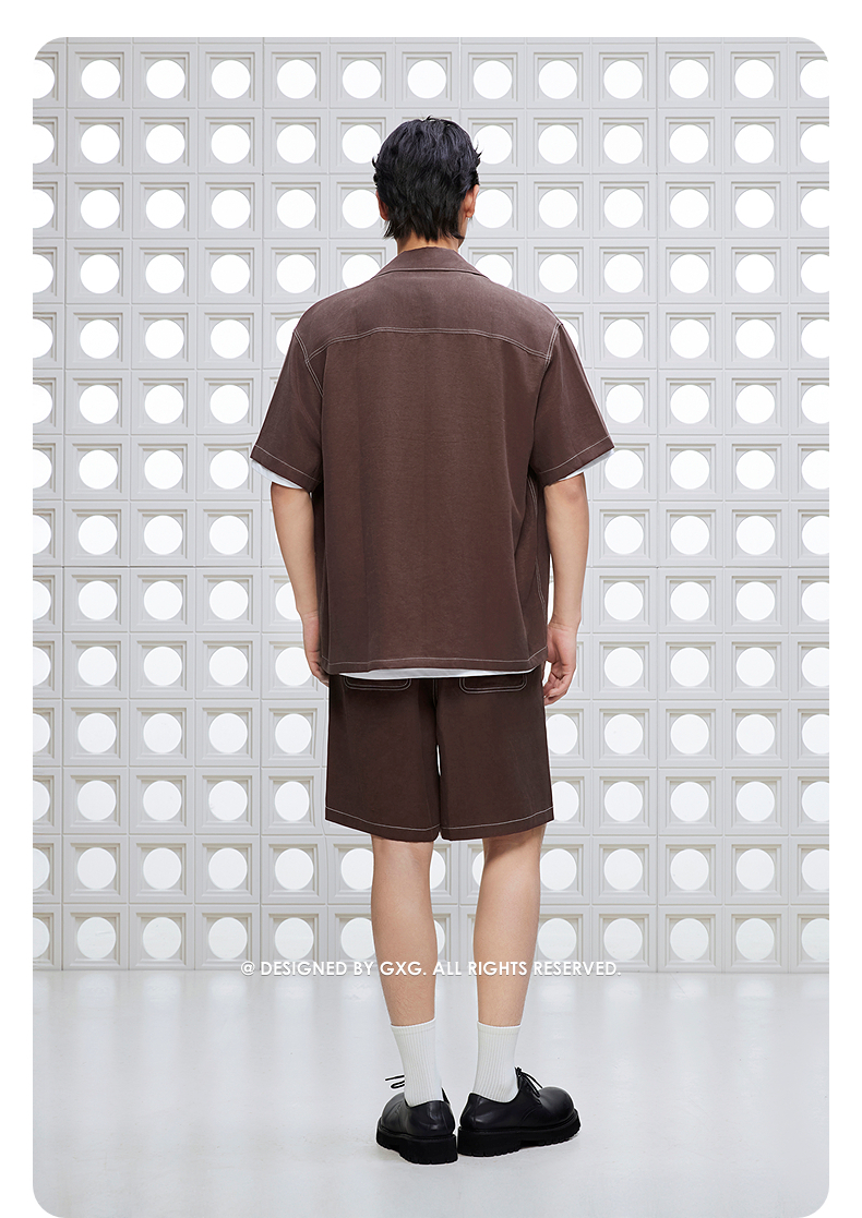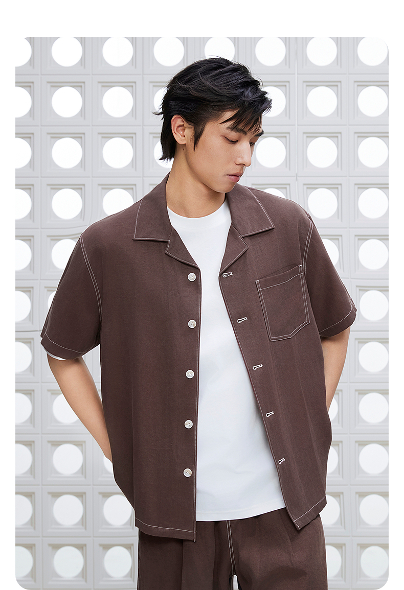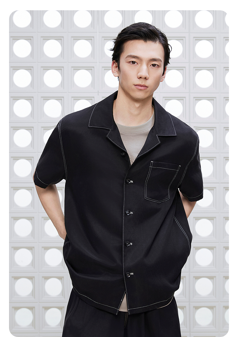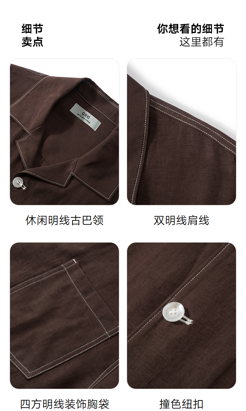 GXG男装 撞明线短袖休闲衬衫古巴领通勤男衬衣上装 2025夏季热卖