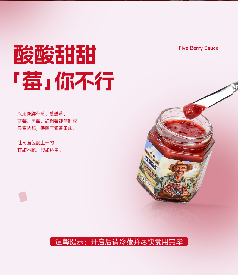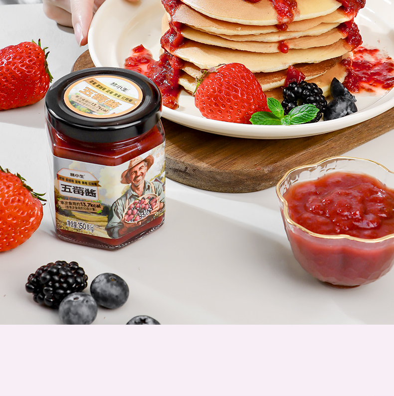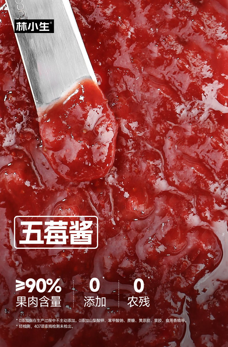 优选 | 林小生五莓酱 150g/瓶*4瓶 90%的果肉含量 肉眼看得见的蓝莓大颗粒