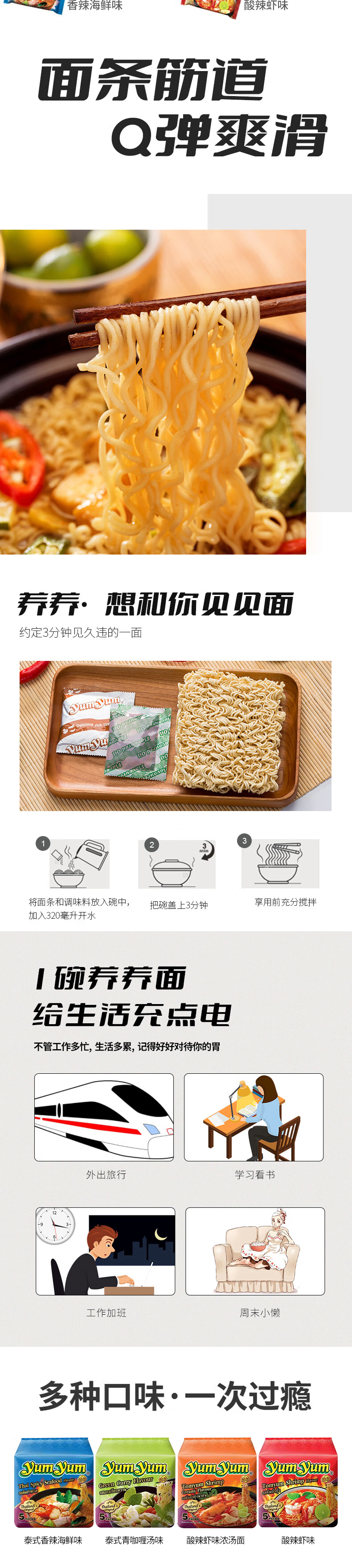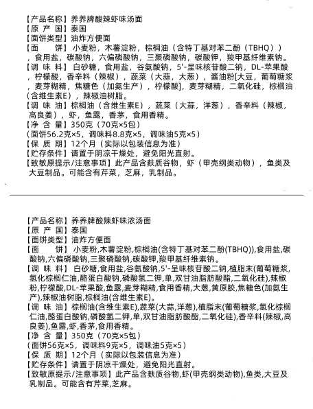 泰国进口养养牌泰式香辣海鲜味丨泰式青咖喱味丨酸辣虾味丨酸辣虾味浓汤面350g/袋