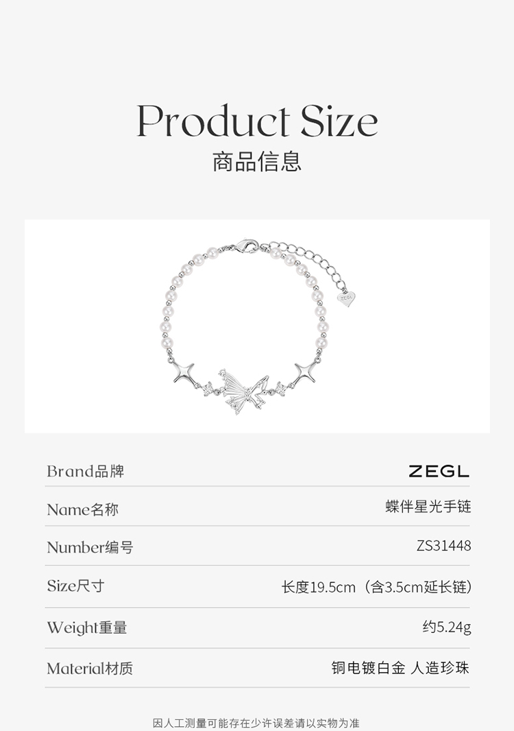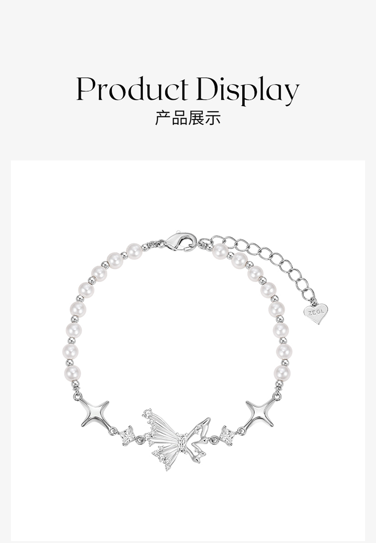 ZEGL设计师晶蝶愈心系列蝴蝶四芒星手链女ins小众设计仿珍珠手饰