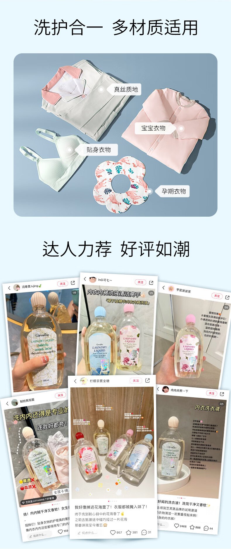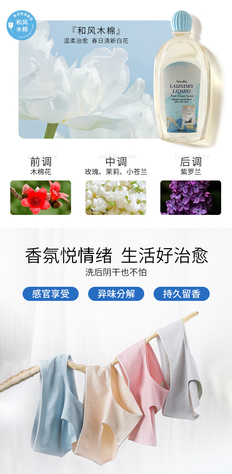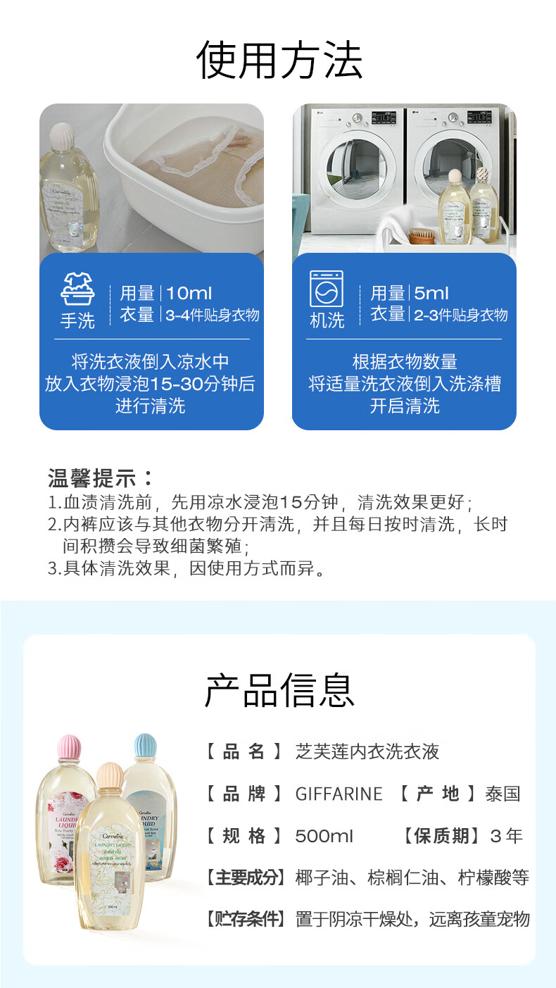 【分仓直发包邮】芝芙莲内衣洗衣液500ml(蜜桃玫瑰/和风木棉)