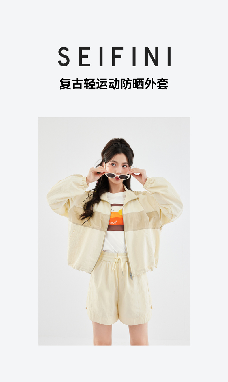 【严选】诗凡黎短外套复古轻运动防晒宽松夹克式女2024春夏新款复古时髦SF5110361
