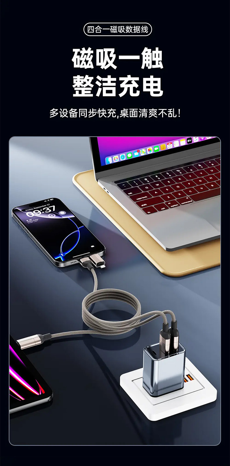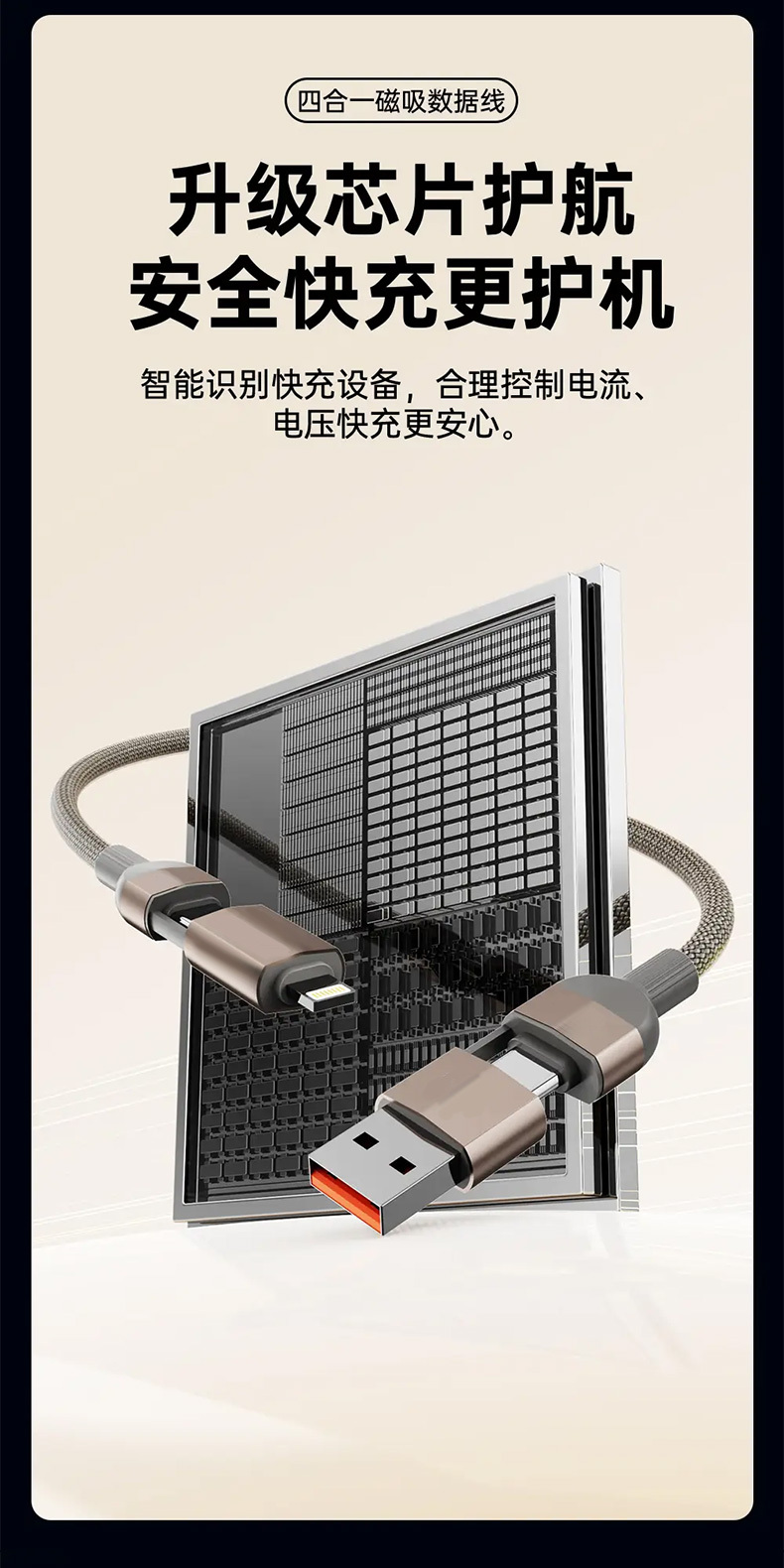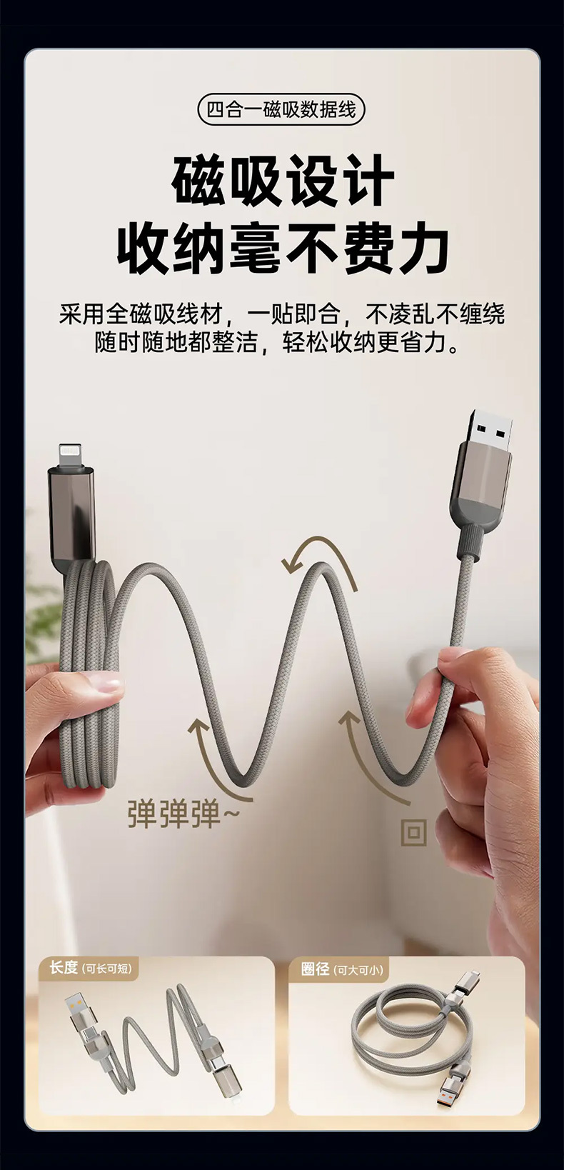 【四合一磁吸快充线】65W快充+磁吸收纳!全能接口,兼容手机平板笔记本等!耐磨耐用,安全高效两不误!【XW-X】