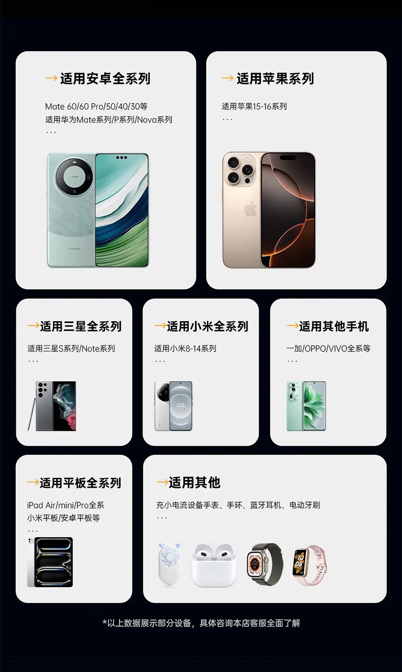 支持iPhone7-iPhone16三星/华为/小米等手机兼容